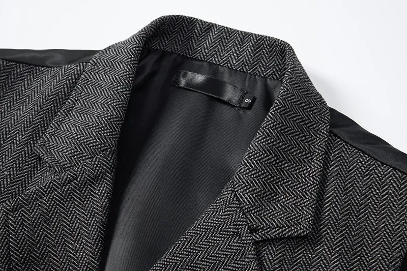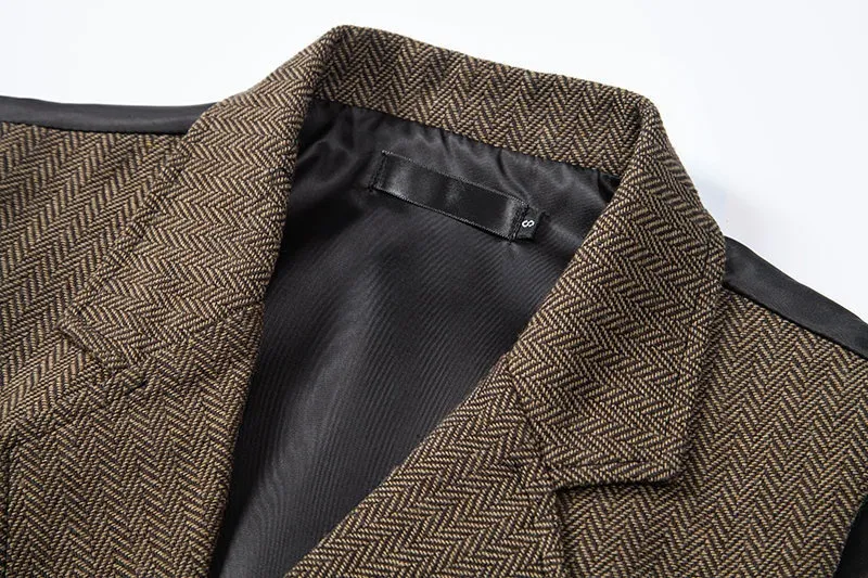 Timeless Elegance: The combination of herringbone tweed, retro lapels, and double-breasted styling creates a sophisticated