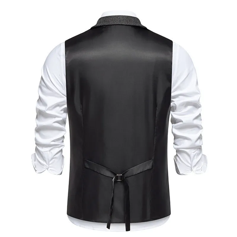 The Men's Herringbone Tweed Suit Vest Retro Lapels Double Breasted Vest is the perfect choice for any man who wants to add a touch of vintage flair to his wardrobe without compromising on modern style. Whether you're attending a formal event or looking to elevate your everyday look, this vest provides a sophisticated, stylish appearance that never goes out of fashion. Its versatile design and high-quality construction ensure that it’s an essential piece for any fashion-forward man looking to make a statement.