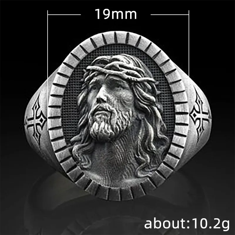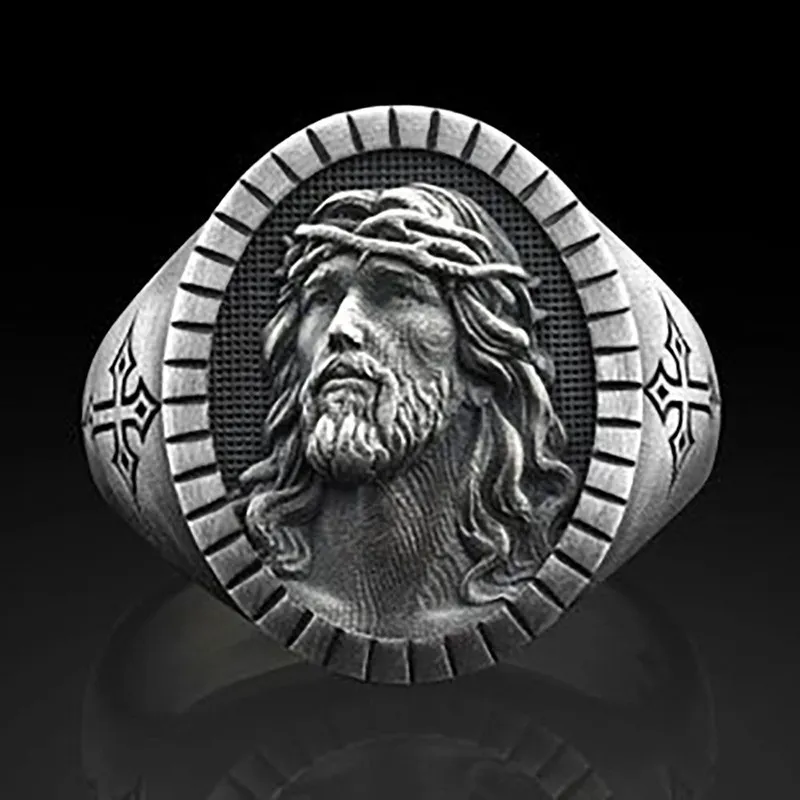 Men's Jesus Oxidized Ancient Silver Ring