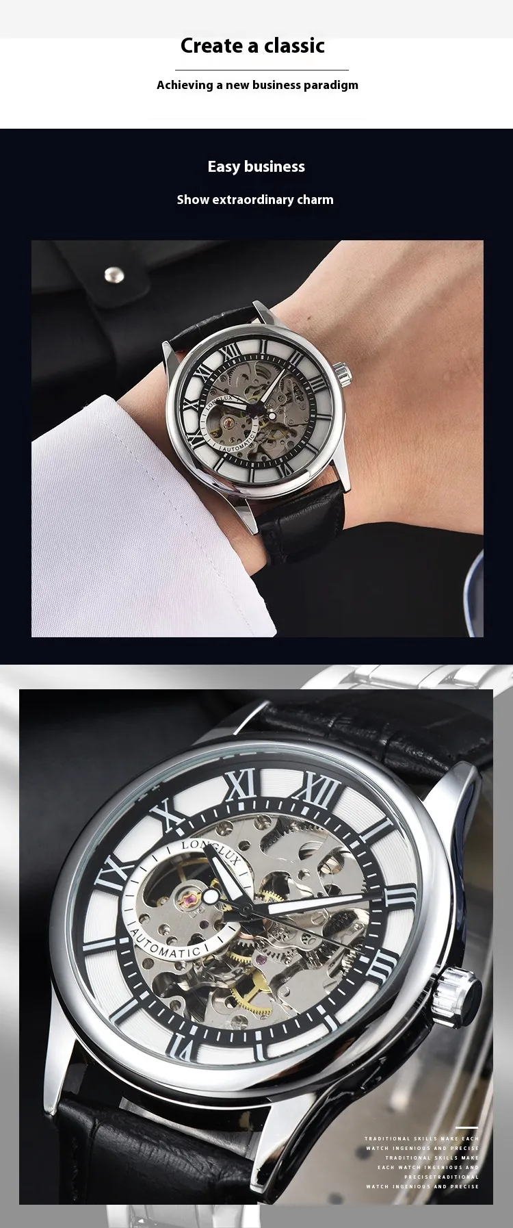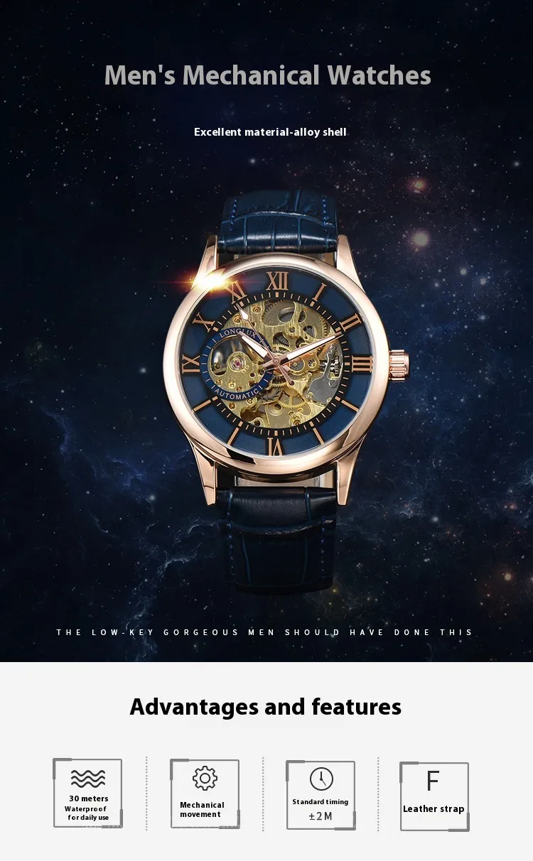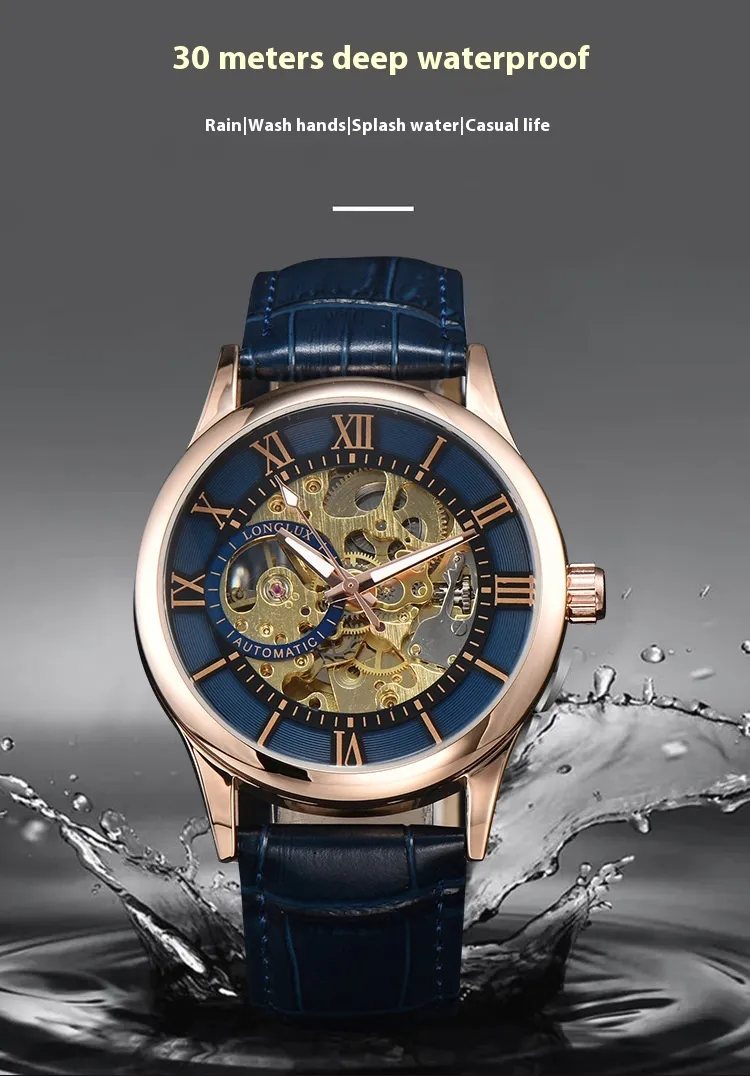 This watch is more than just a timepiece—it’s a reflection of your personal style. The Men's Mechanical Watch Roman Scale Waterproof Fashion Business complements a variety of settings, from corporate meetings to weekend brunches. Its versatile design makes it suitable for pairing with suits, business casual attire, or even smart-casual outfits.