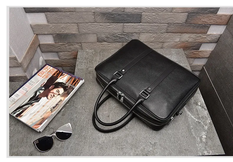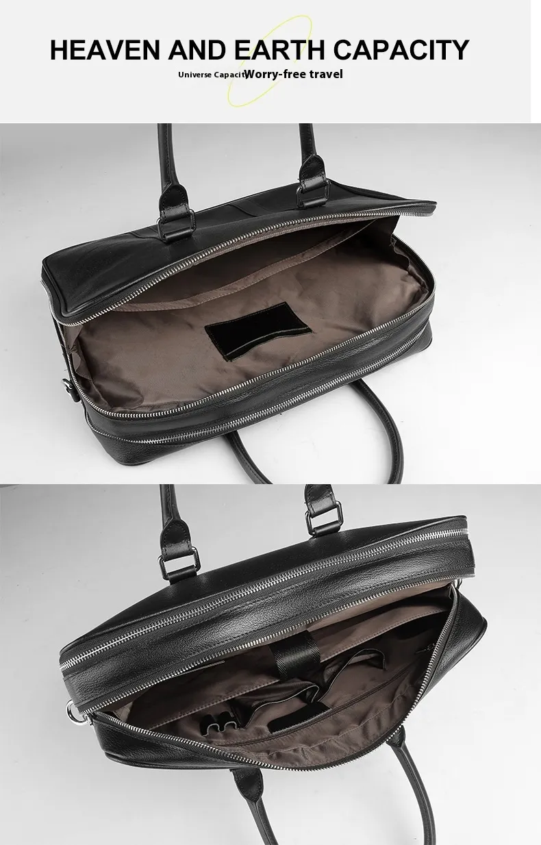 essentials, including documents, electronic devices, and personal items. The high-quality leather construction ensures durability and