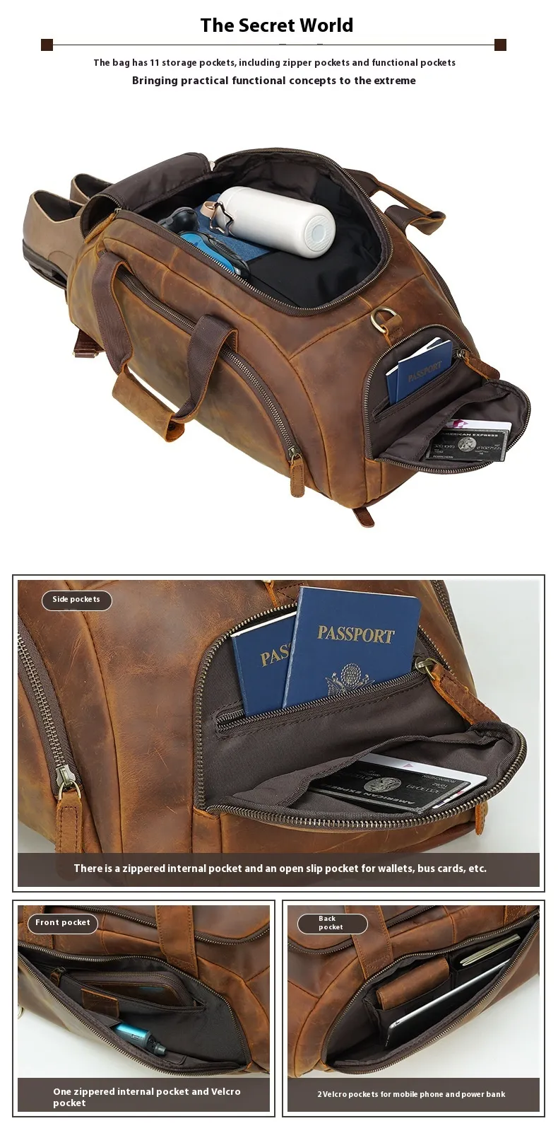 Men's Retro Cowhide Outdoor Large Capacity Backpack