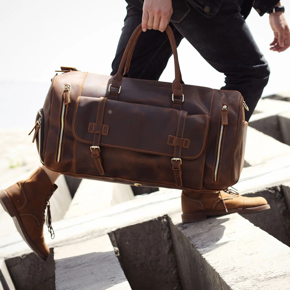 Introducing the Men's Retro Genuine Leather Super Large Capacity Hand Luggage Bag, designed for the modern traveler who values both style
