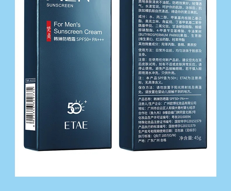 Men's Sunscreen Refreshing Moisturizing Non-greasy