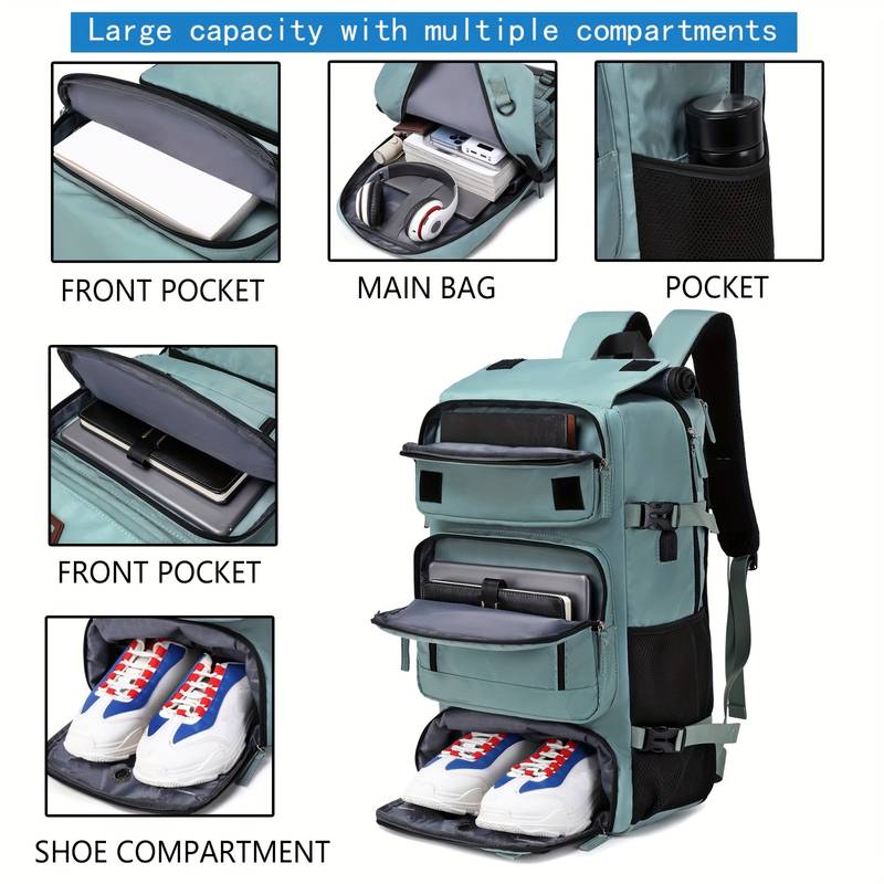 Multi-functional Storage: The laptop compartment, shoe storage, and large main compartment offer versatile storage