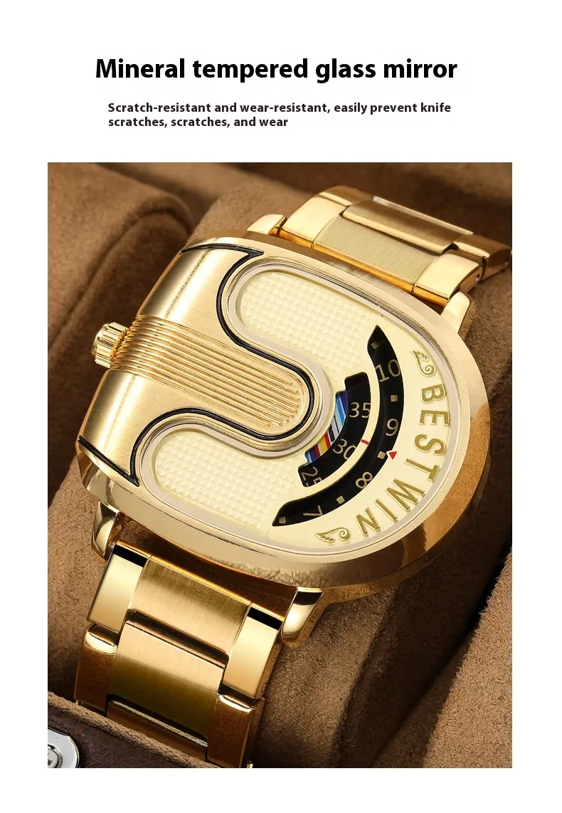 The U-shaped dial makes this watch a unique accessory, perfect for men who want to stand out.