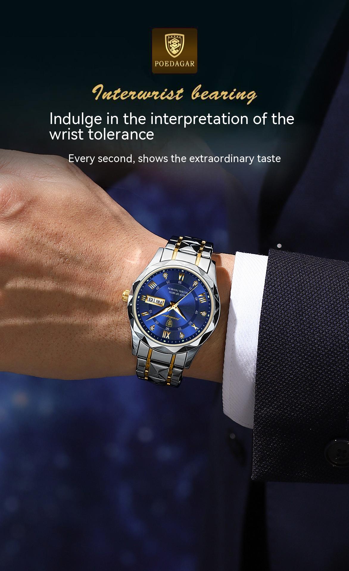 Men's Waterproof Double Calendar Luminous Quartz Watch