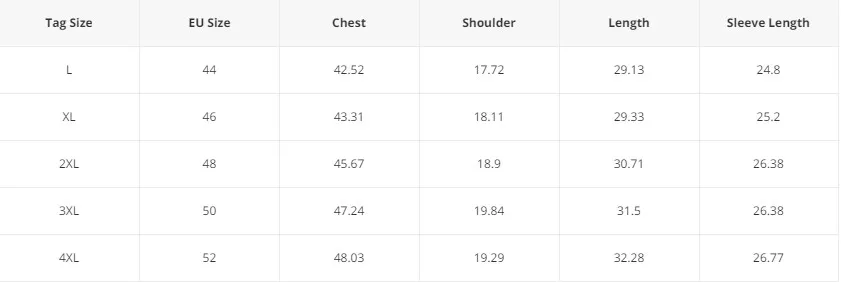 Size: L, XL, XXL, XXXL, XXXX