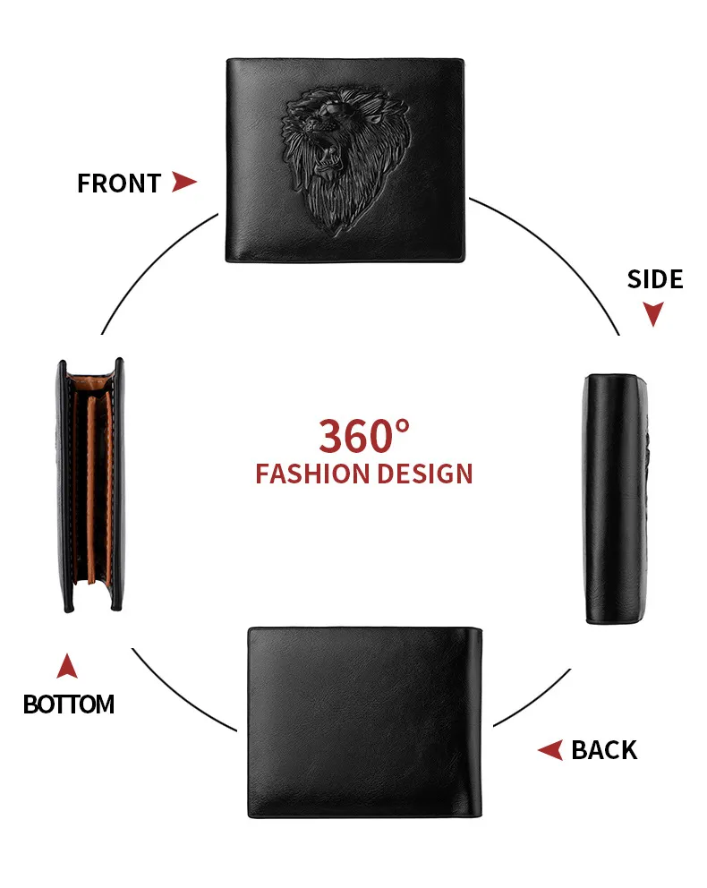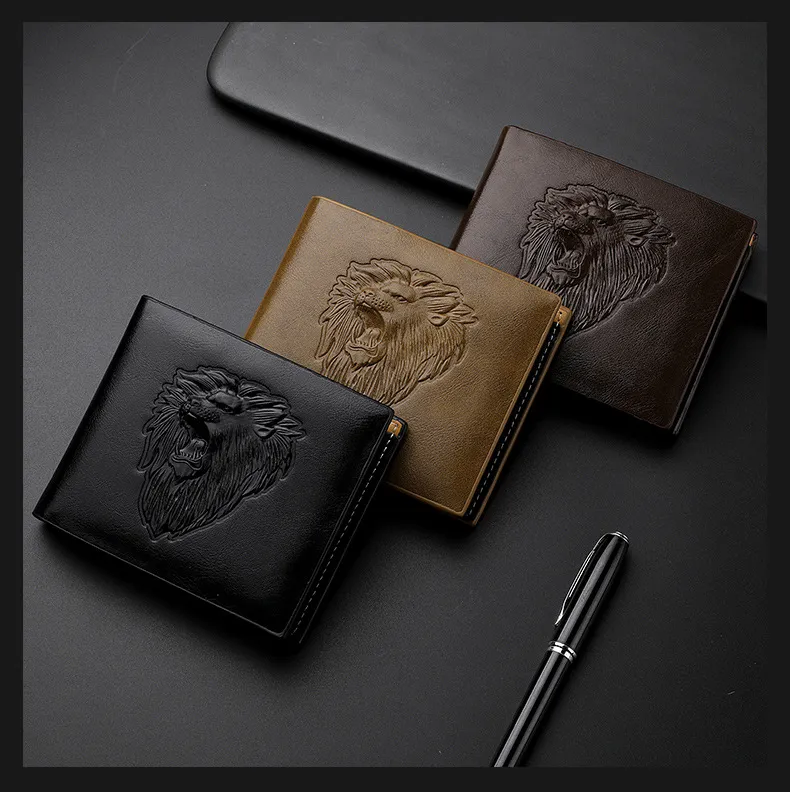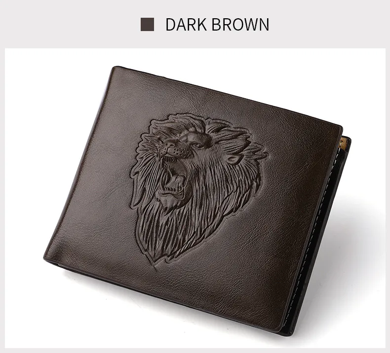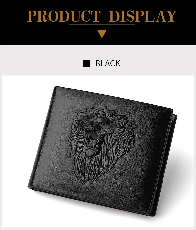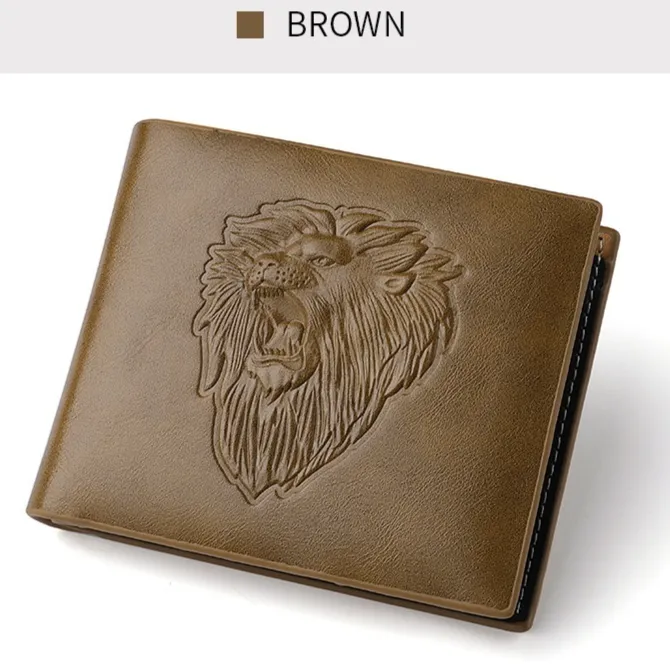 The wallet's sleek and compact design makes it ideal for everyday use, whether you're heading to work, traveling, or enjoying a night out. The bold lion embossing pairs well with both casual and formal outfits, making it a versatile addition to any wardrobe. With its sophisticated appearance and practical functionality, this wallet is perfect for the modern man.