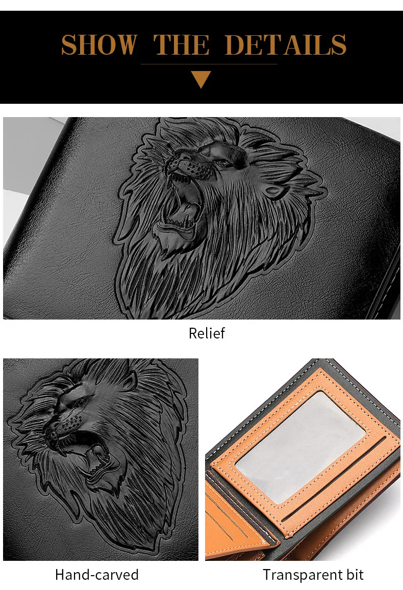 The standout feature of this wallet is the lion embossed pattern, which adds a fierce, royal touch to its overall appearance. The intricate embossing captures the majestic essence of the lion, making it more than just a wallet—it's a work of art. Whether you're at a meeting, out for a night on the town, or traveling, this wallet adds a touch of personality and luxury to your ensemble.