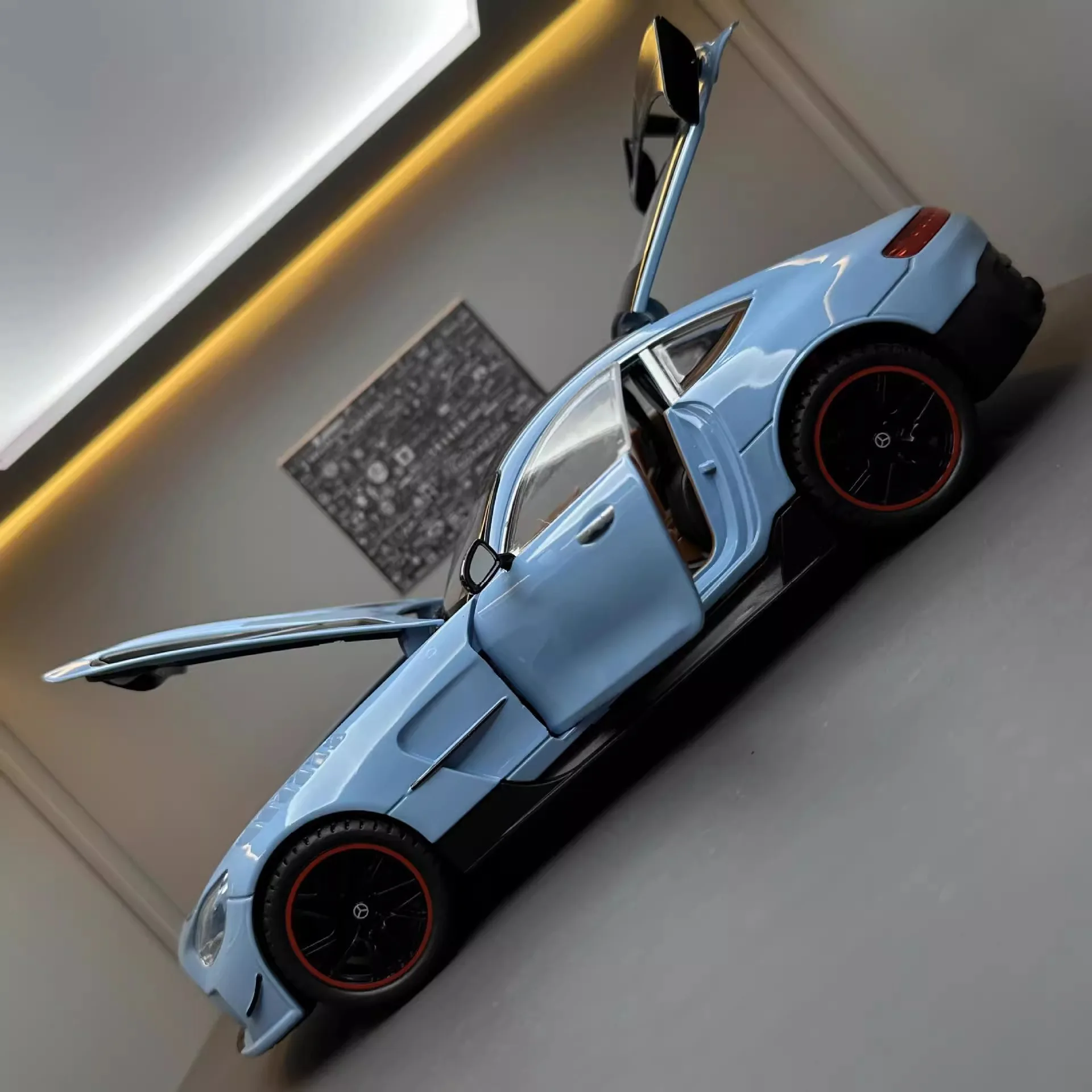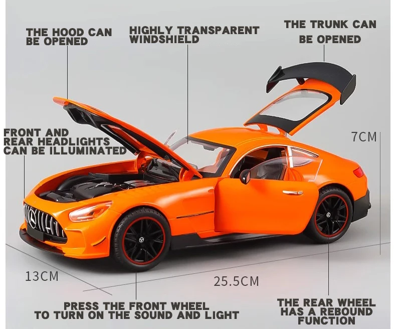 The Large 1:18 Mercedes Benz GTR Miniature Collection is the ultimate collectible diecast vehicle for both enthusiasts and children alike. This simulation alloy car features incredible detail and craftsmanship, providing an authentic experience that mirrors the grandeur of the actual Mercedes Benz GTR. Equipped with sound and light features, this diecast vehicle brings the thrill of the famous car right into your hands. Whether you are a car collector, a fan of Mercedes Benz, or looking for an excellent gift for children, this toy car is the perfect addition to any collection.