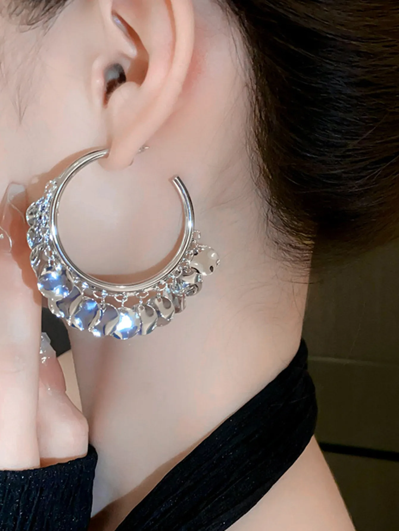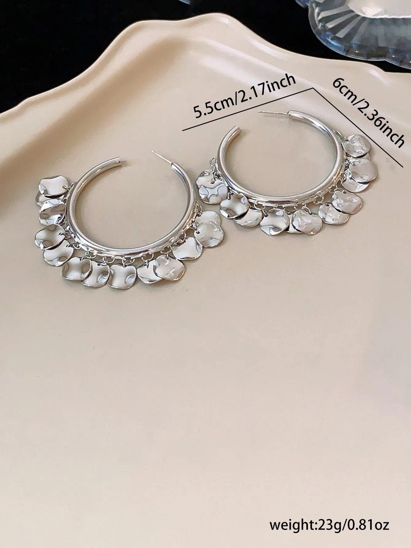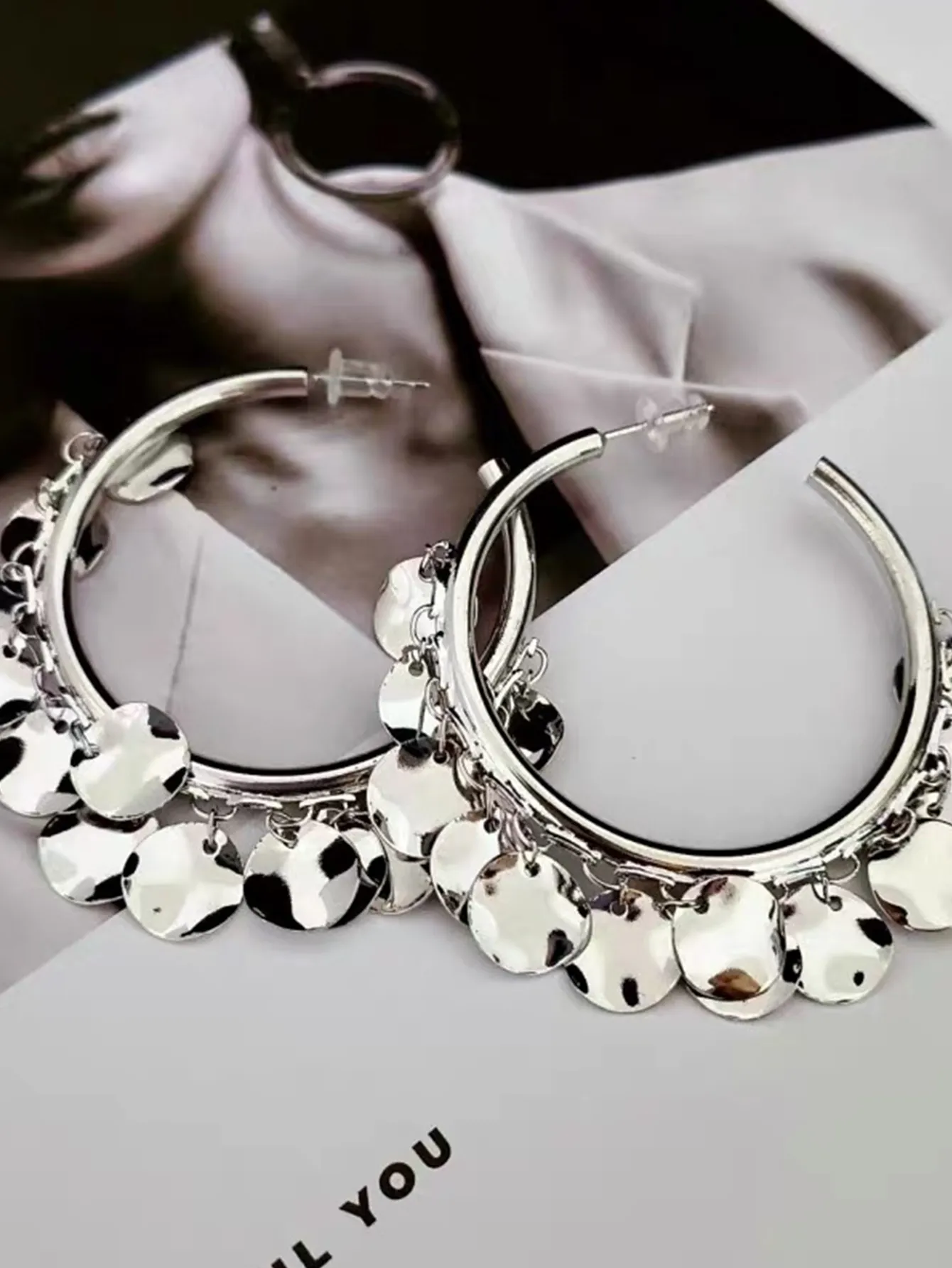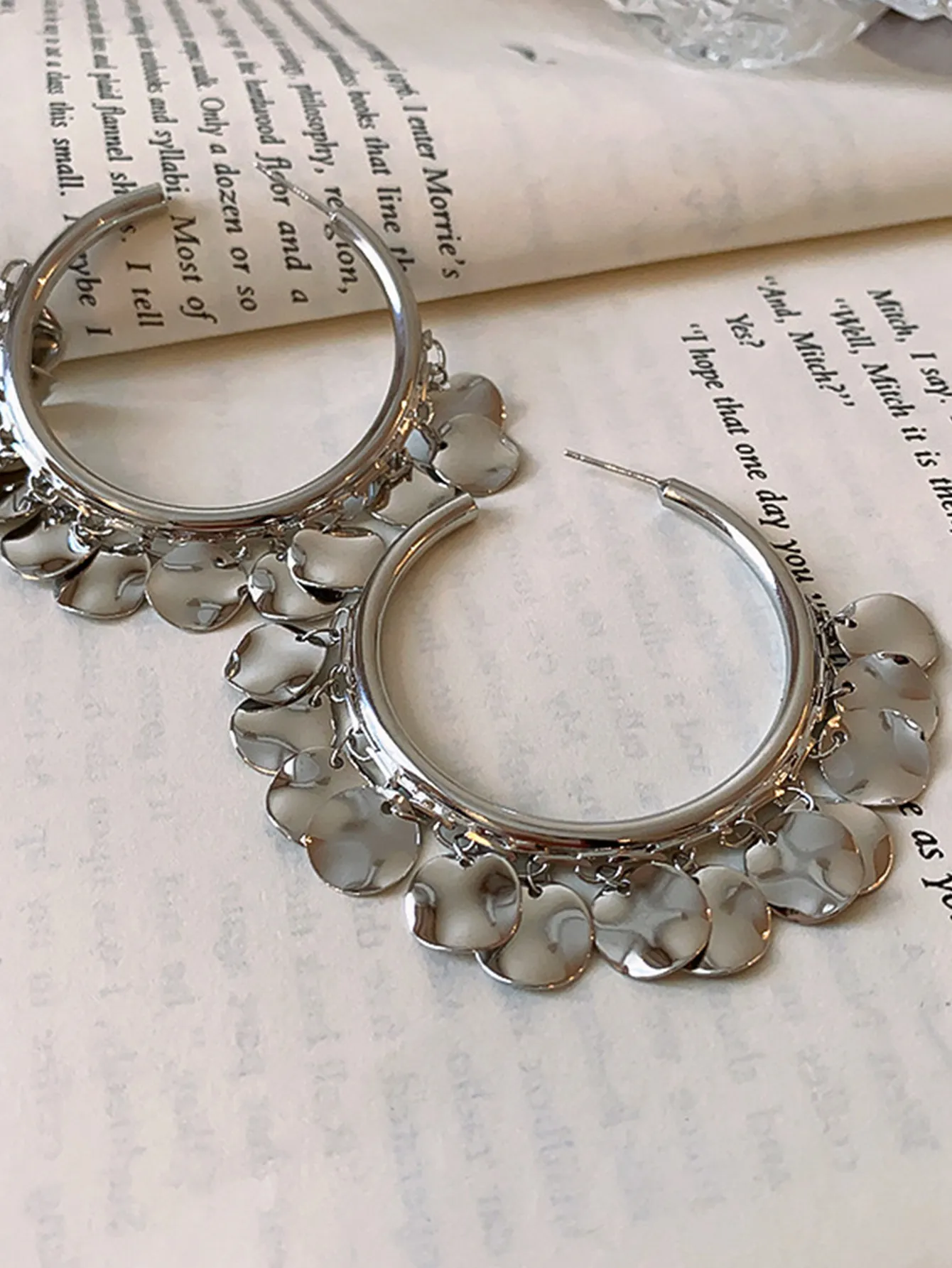 Metal Glossy Wafer Tassel Earrings