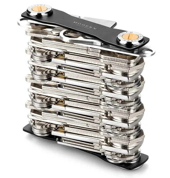 Unrestrained and versatile with the cool texture of stainless steel and anodized aluminum, this key storage device is created --- smaller,