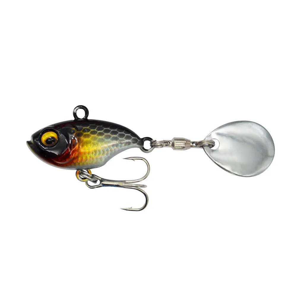 One of the most striking features of this lure is the rotating sequins attached to the metal plate. These sequins create a flash that simulates the movement of small fish or baitfish, making it a highly effective attractant for predatory fish. The rotating sequins are designed to catch and reflect light, producing a shimmering effect that grabs the attention of fish from a distance.