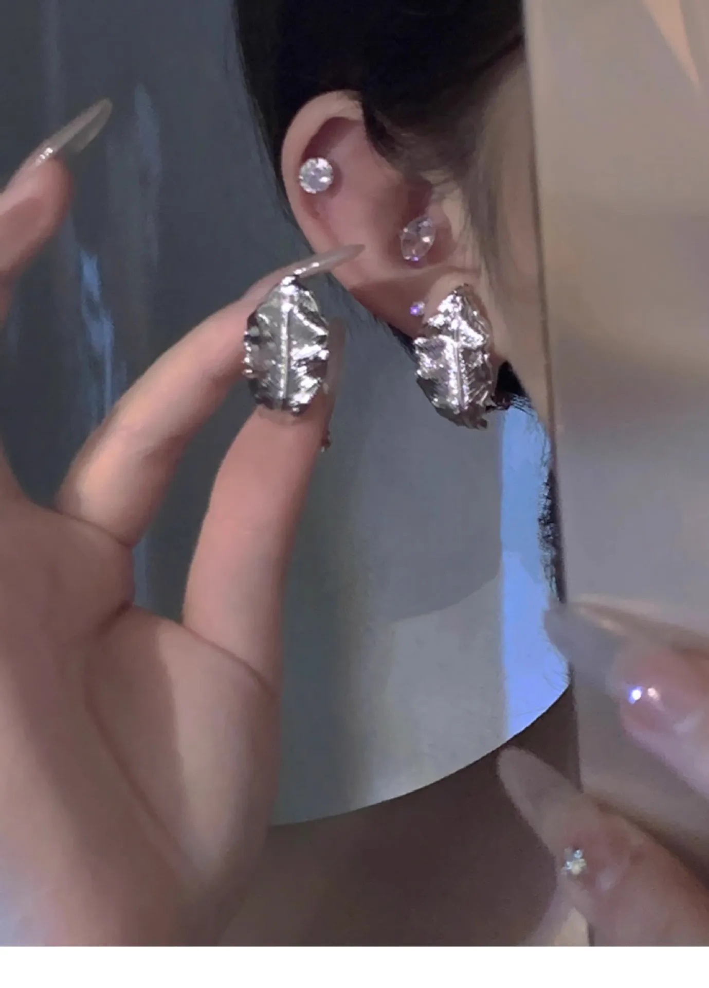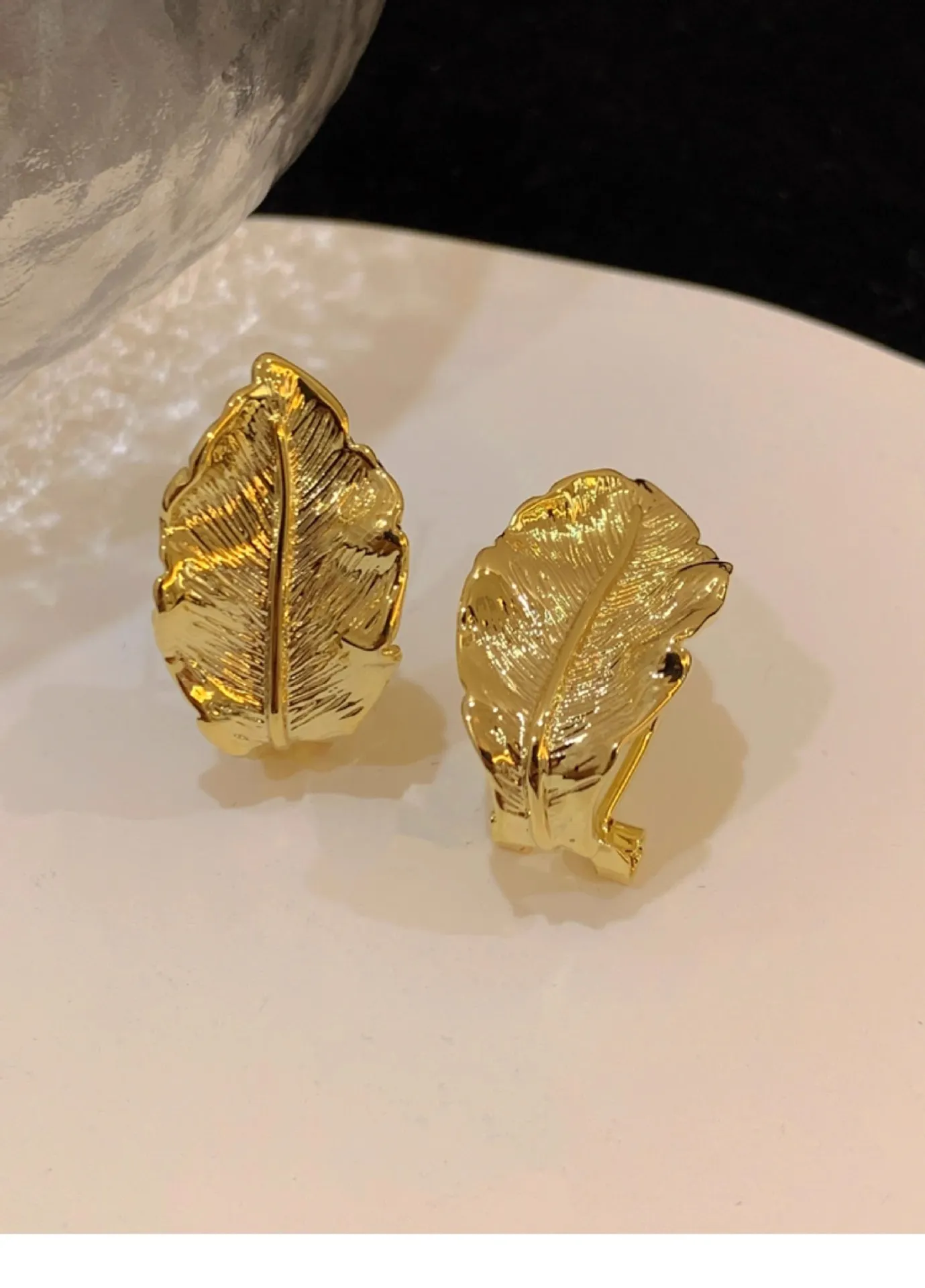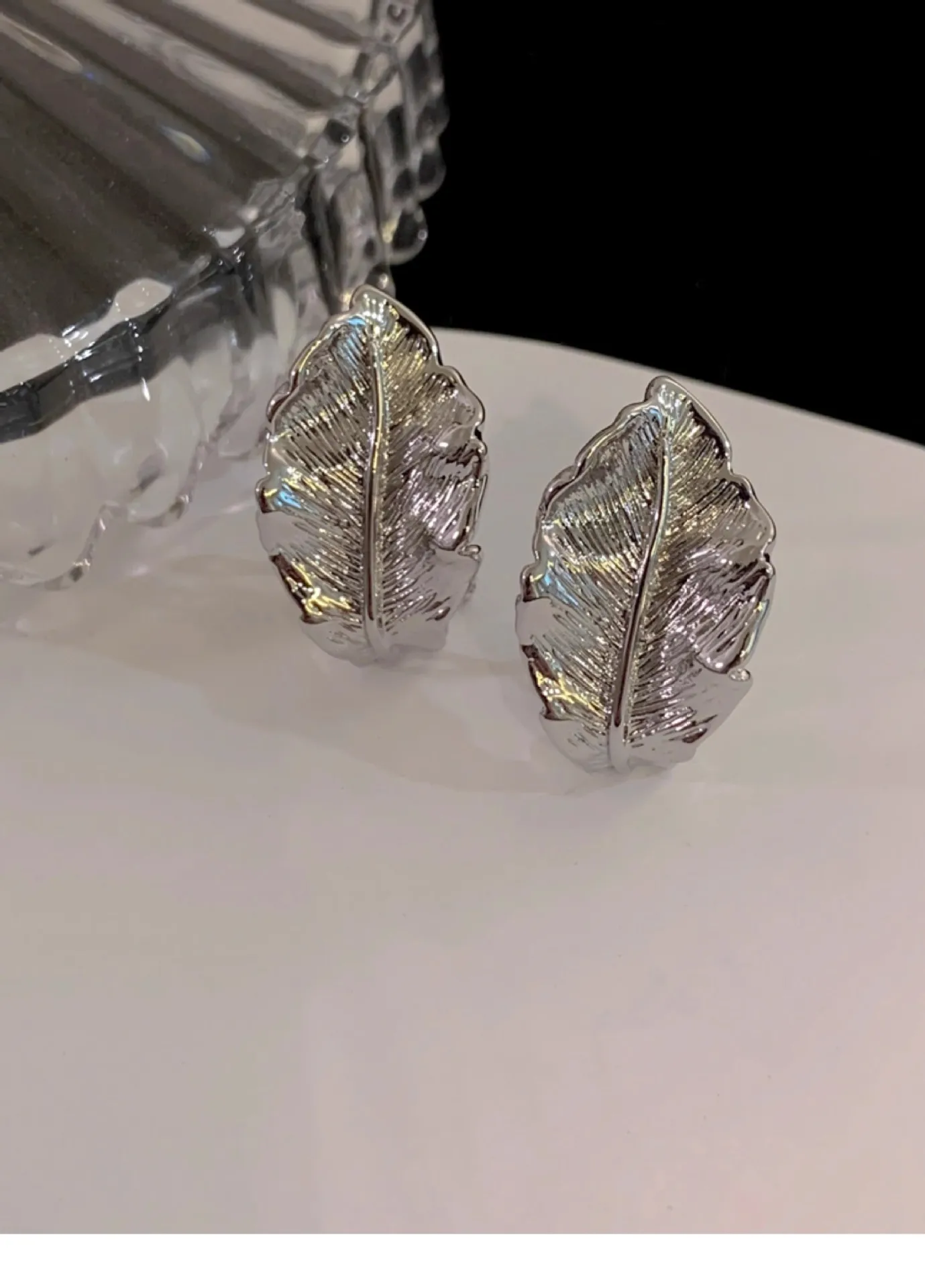 Metal Three-dimensional Leaf-shapepd Stud Earrings Women