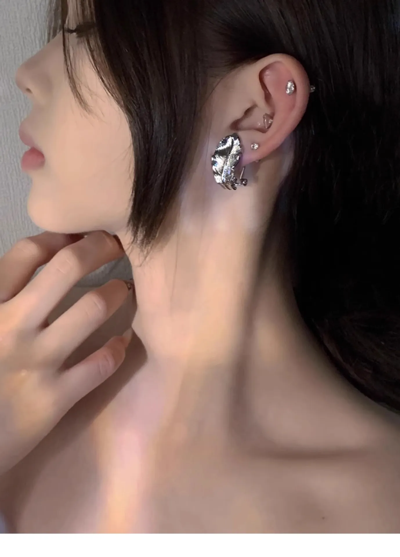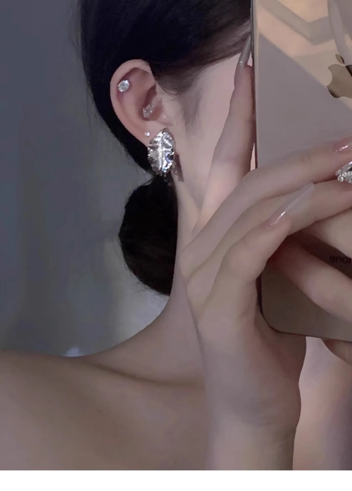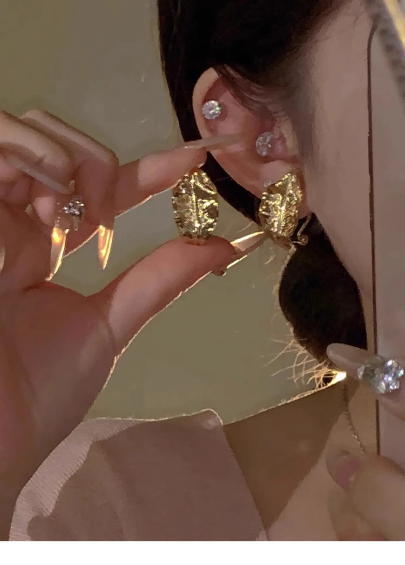 Metal Three-dimensional Leaf-shapepd Stud Earrings Women
