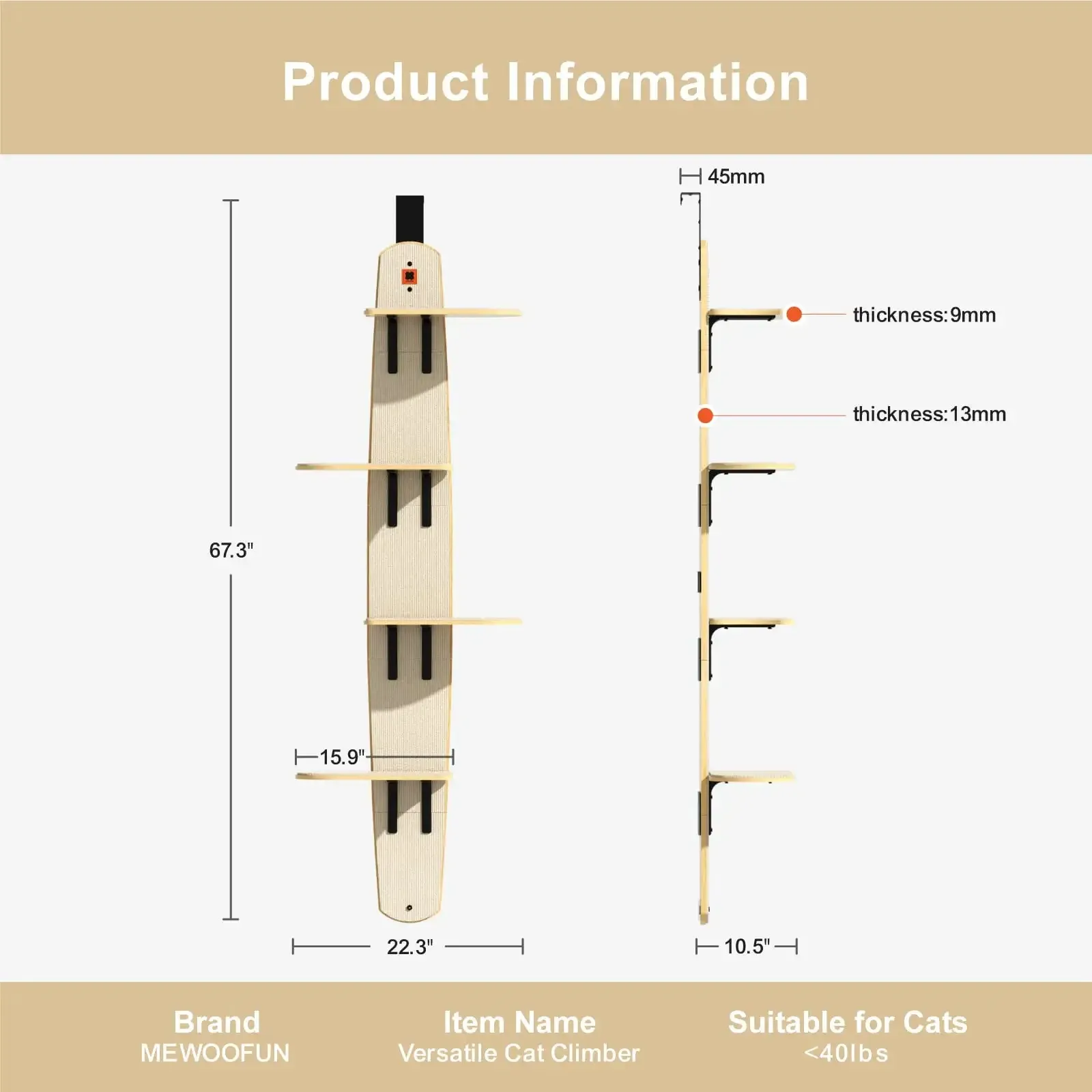 Safety is a top priority with the Mewoofun Vertical Cat Climber Tree. Each shelf is made from durable materials designed to support your cat's weight and withstand vigorous play. The shelves are securely attached to the door with adjustable straps, ensuring stability and preventing wobbling during use. Soft, non-slip pads on each level provide comfort and grip, giving your cat a secure place to climb and rest.