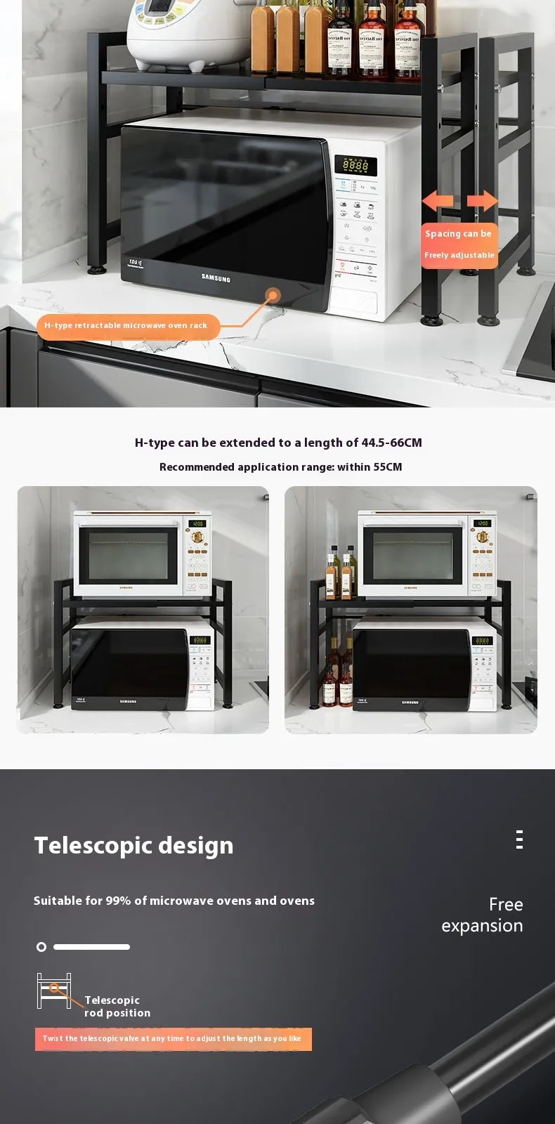 Sturdy and Durable Construction: Made from high-quality materials such as wood, metal, or steel, our microwave shelves are