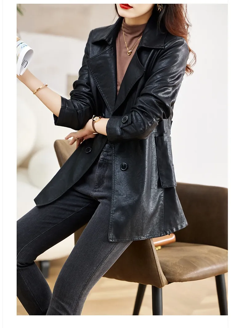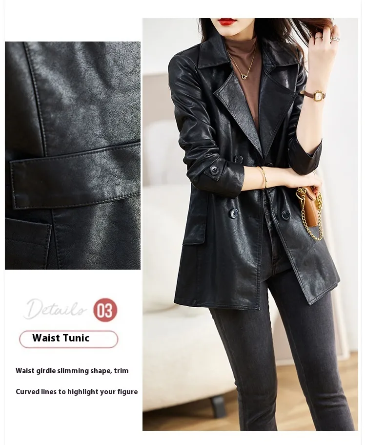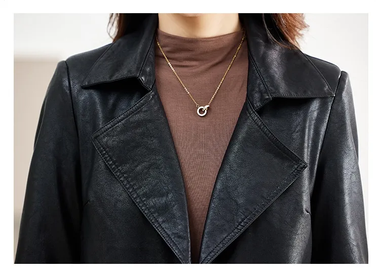 Mid-length Leather Coat Spring And Autumn