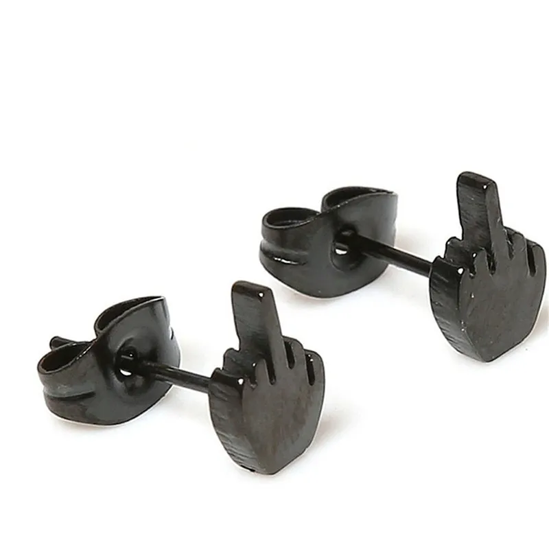 - Design: Middle finger gesture earrings with intricate details and polished finishes