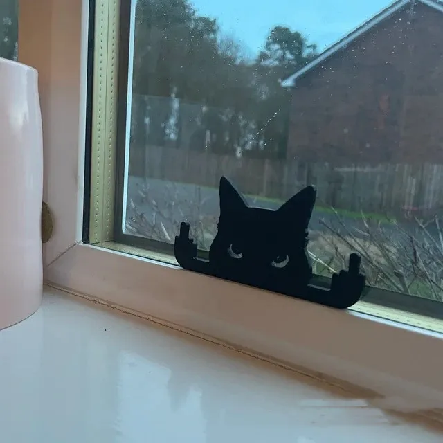 Design: Features a peeping cat with a raised middle finger, adding a humorous twist to traditional Halloween décor