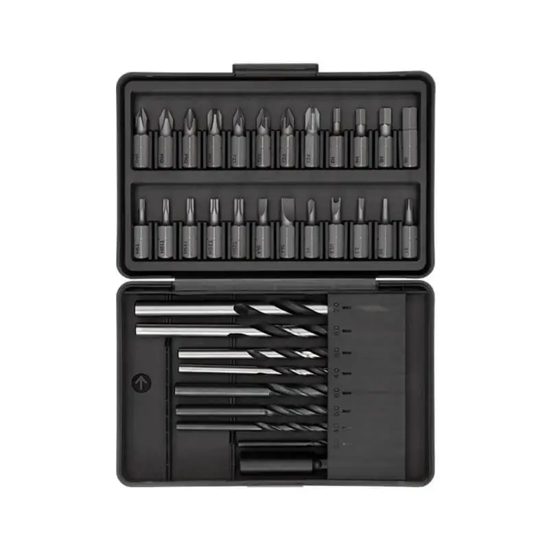 Electric Drill*1, Storage Bag*1, Adapter*1, Charging Cable*1, Bit Box*1, Drill Bit*8, Bit*24, Extension Rod*1, Instruction Manual*1