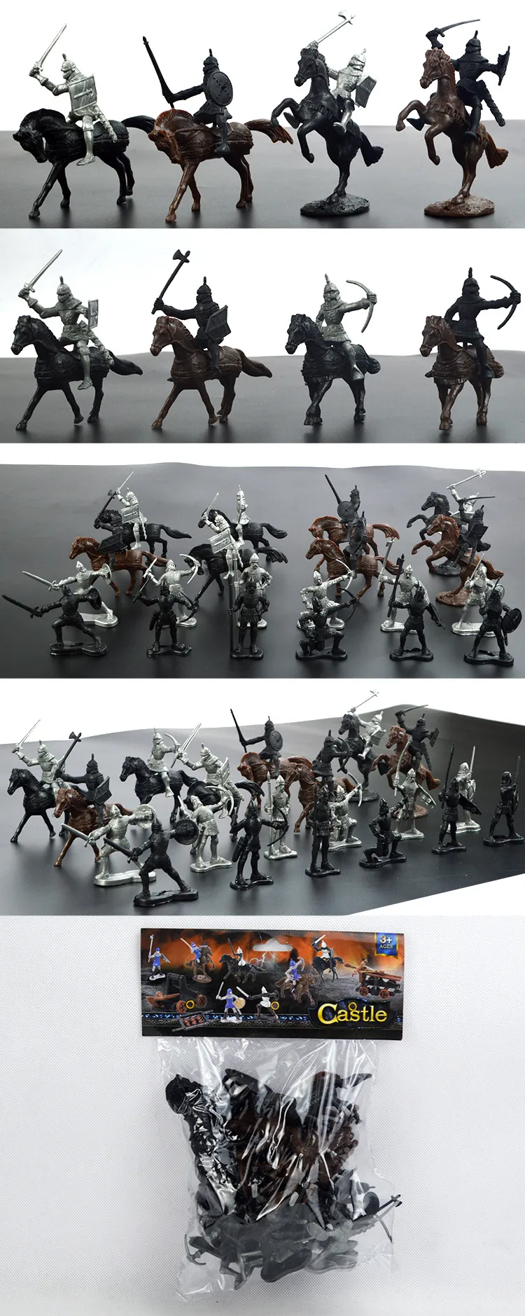 12 soldiers + 8 soldiers and horses + 8 cavalry (mixed black and gray)