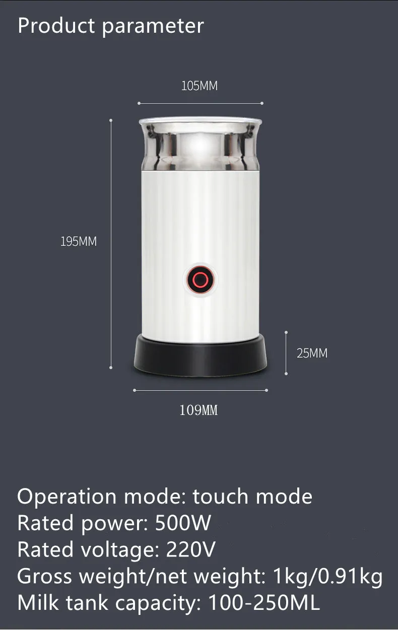 Milk tank capacity: 100-250ML