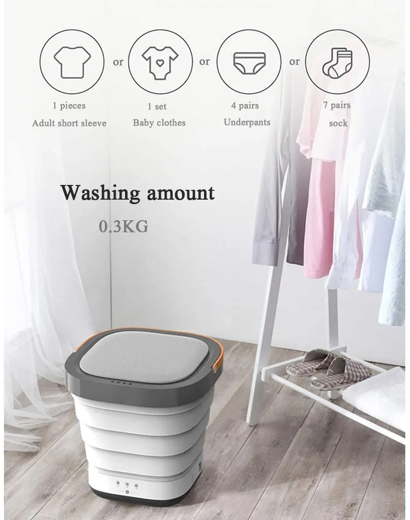 Compact Design: Small enough to fit into tight spaces, this mini washing machine is easy to store and carry, making it