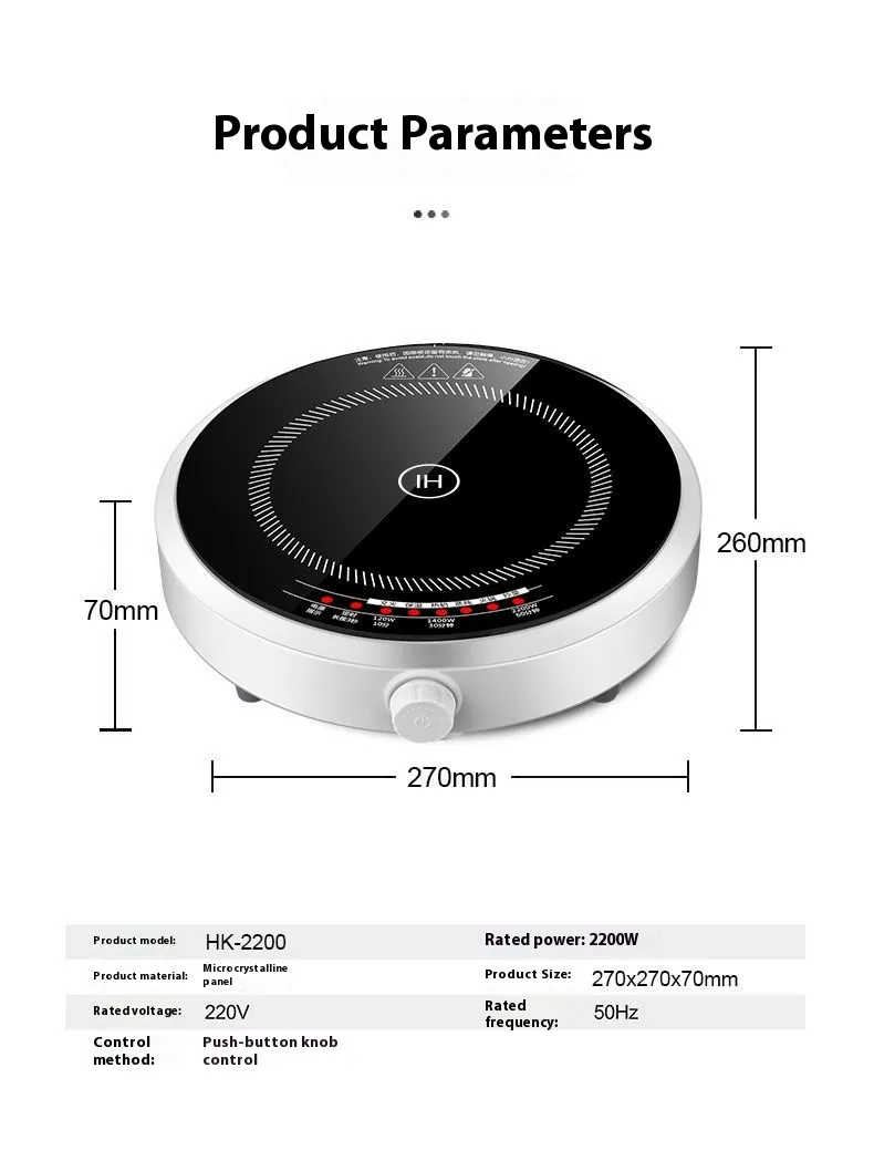 Built for versatility, this household induction cooker supports a variety of cookware and cooking techniques, whether you're frying, boiling, or simmering. The smart touch panel allows for easy adjustments and the display ensures that you have complete control over the heat settings. The compact size of the cooker does not compromise on power, as it operates with a high wattage to ensure fast and energy-efficient cooking. The safety features include automatic shut-off, overheating protection, and child-lock options, providing peace of mind while cooking.