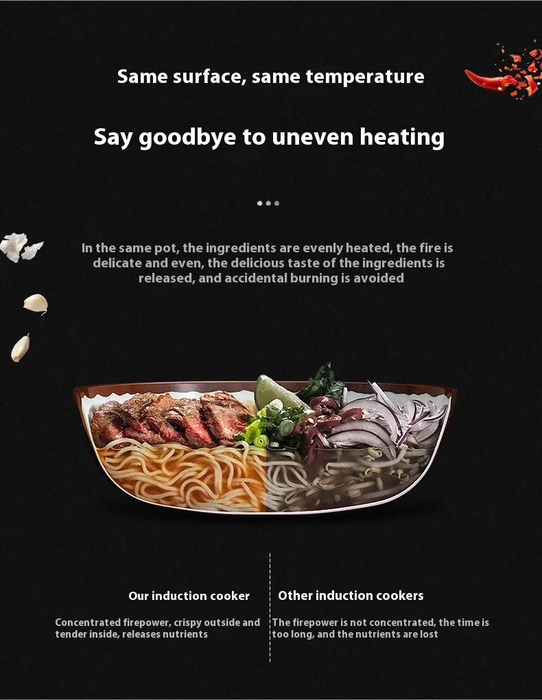 The sleek, ultra-thin design of the Mini Induction Cooker is not only stylish but also space-saving, making it easy to store when not in