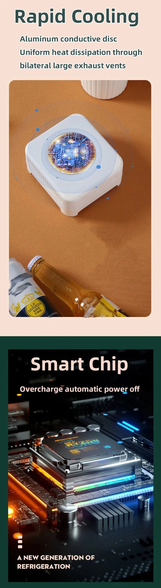 Easy to Use: With one key press start switch, the quick cooler cooling cup is easy to operate, just place the cup directly on our cooling