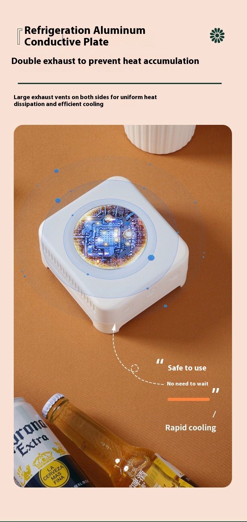 coaster, and press the button to the cooling side, which is very convenient to use.