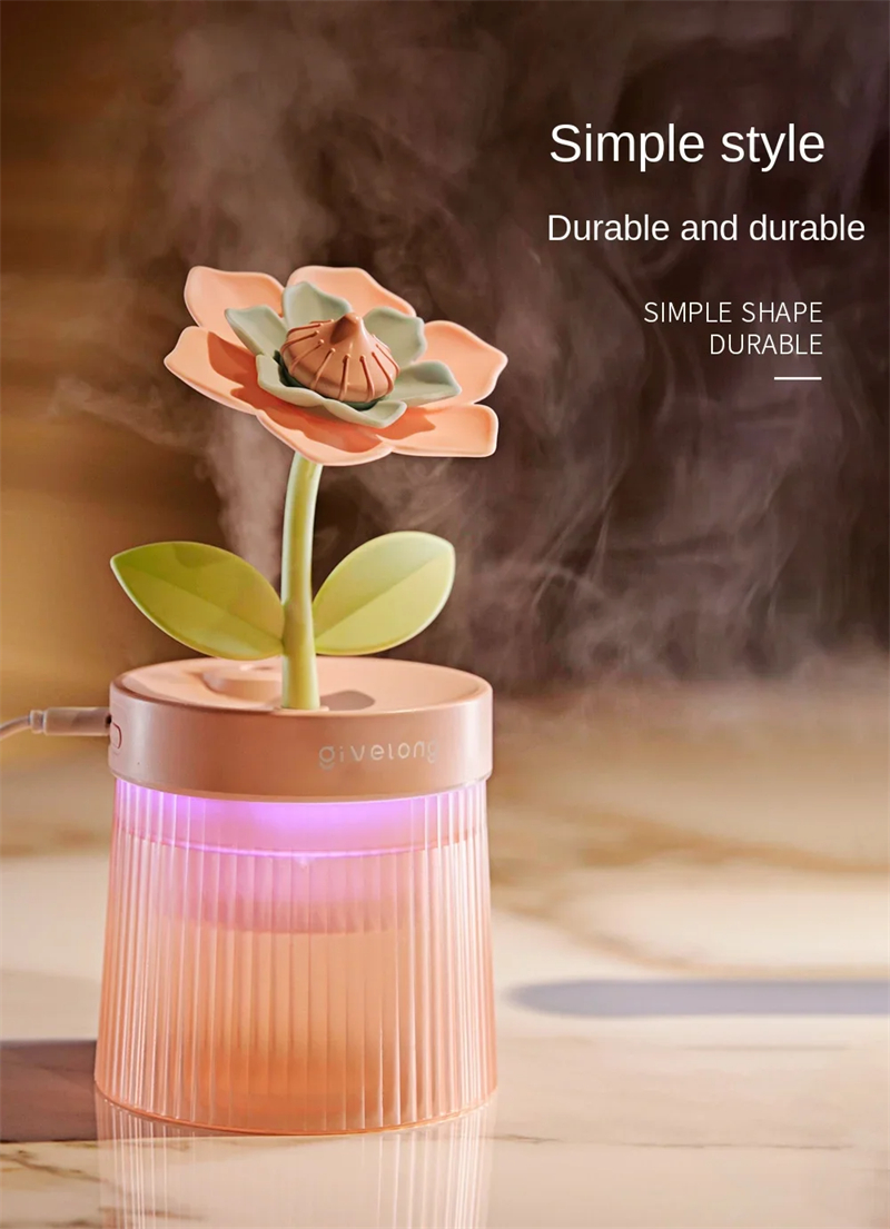 Flower Shape Design: The unique flower shape adds a decorative element to your space. It’s not just a humidifier, but also a
