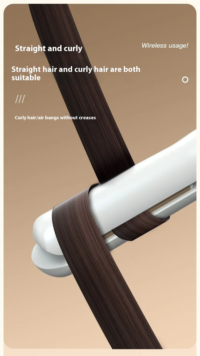 The Mini Wireless Rechargeable Splint Hair Straightener and Hair Curler is a versatile hair styling tool that offers the convenience of