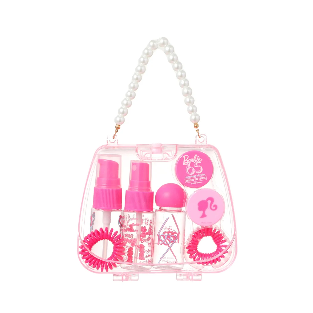 Miniso Barbie Dispensing Bottle Set Sweetheart Handbag Travel Set, 7-Piece Dispensing Bottle Storage Bag