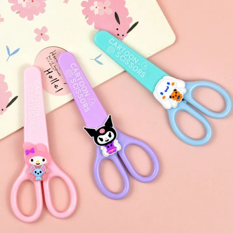 MINISO Cartoon Sanrio Kuromi Scissors Cinnamoroll Melody Cute Kid Safety Shears for Stationery and Student Supplies