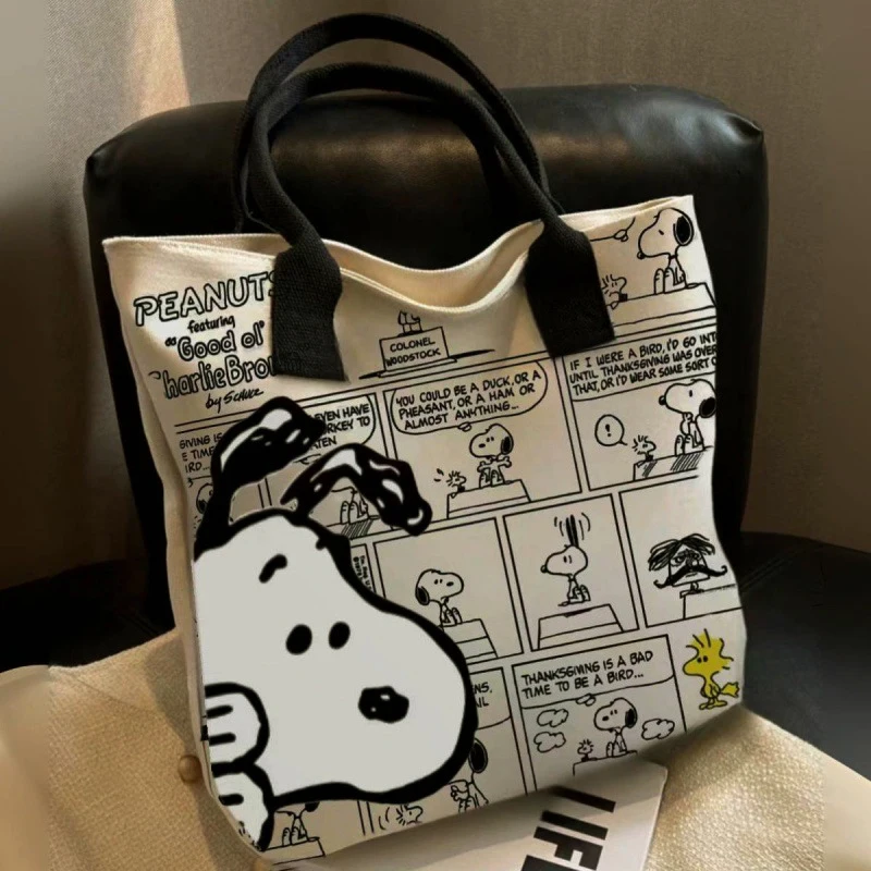 MINISO Snoopy Cartoon Printed Canvas Bag Large Capacity Handbag, Casual Versatile Tote Bag, Shopping Bag, Shoulder Bag