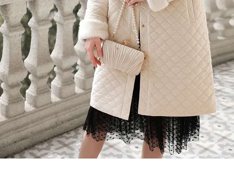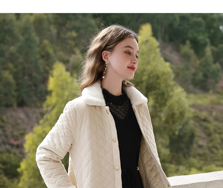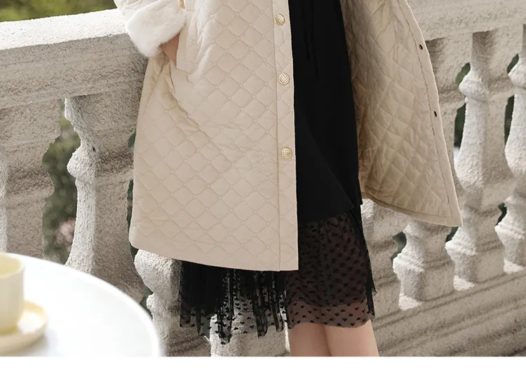 Mink-like Collar Rhombus Cotton-padded Coat Women's Winter Cotton Padded Coat