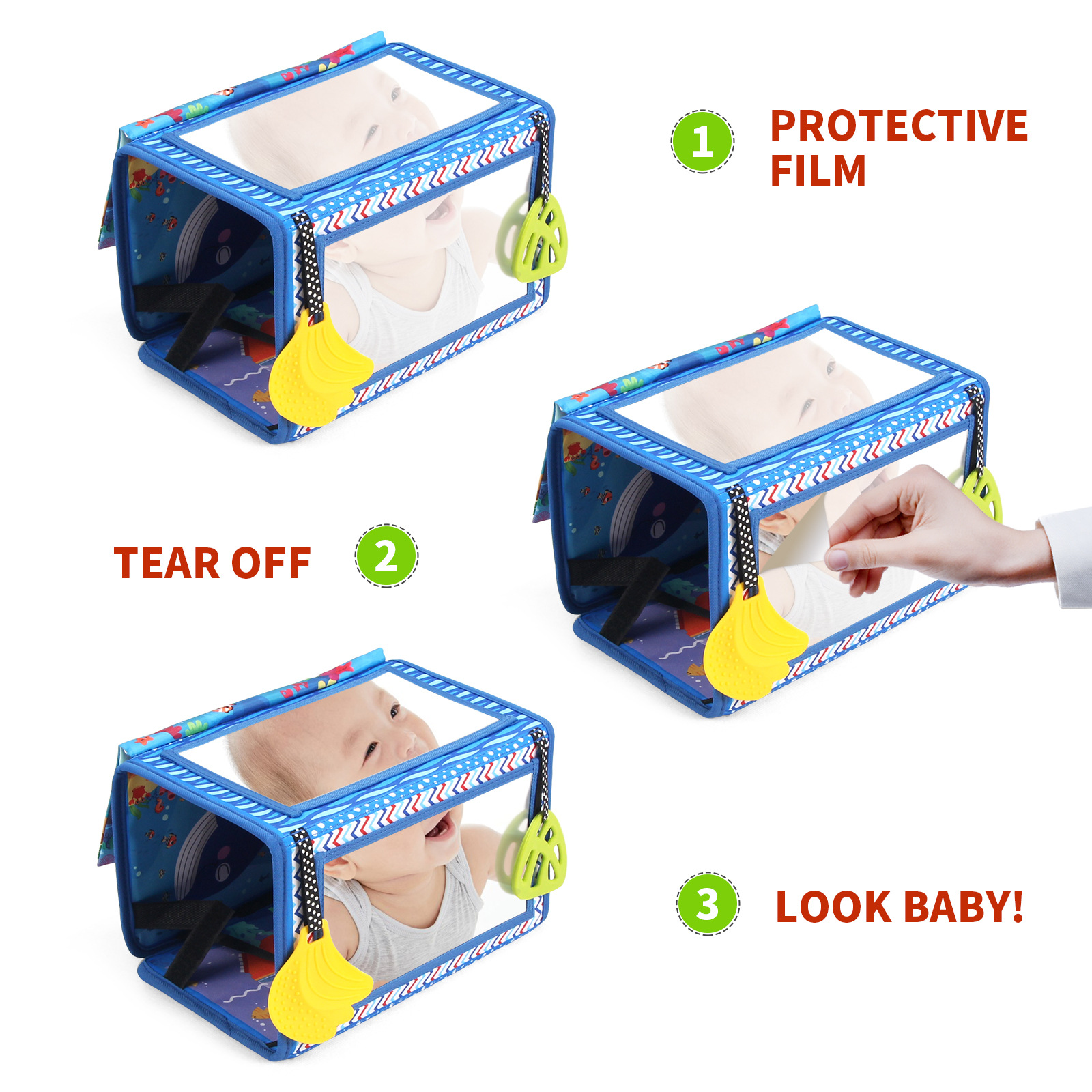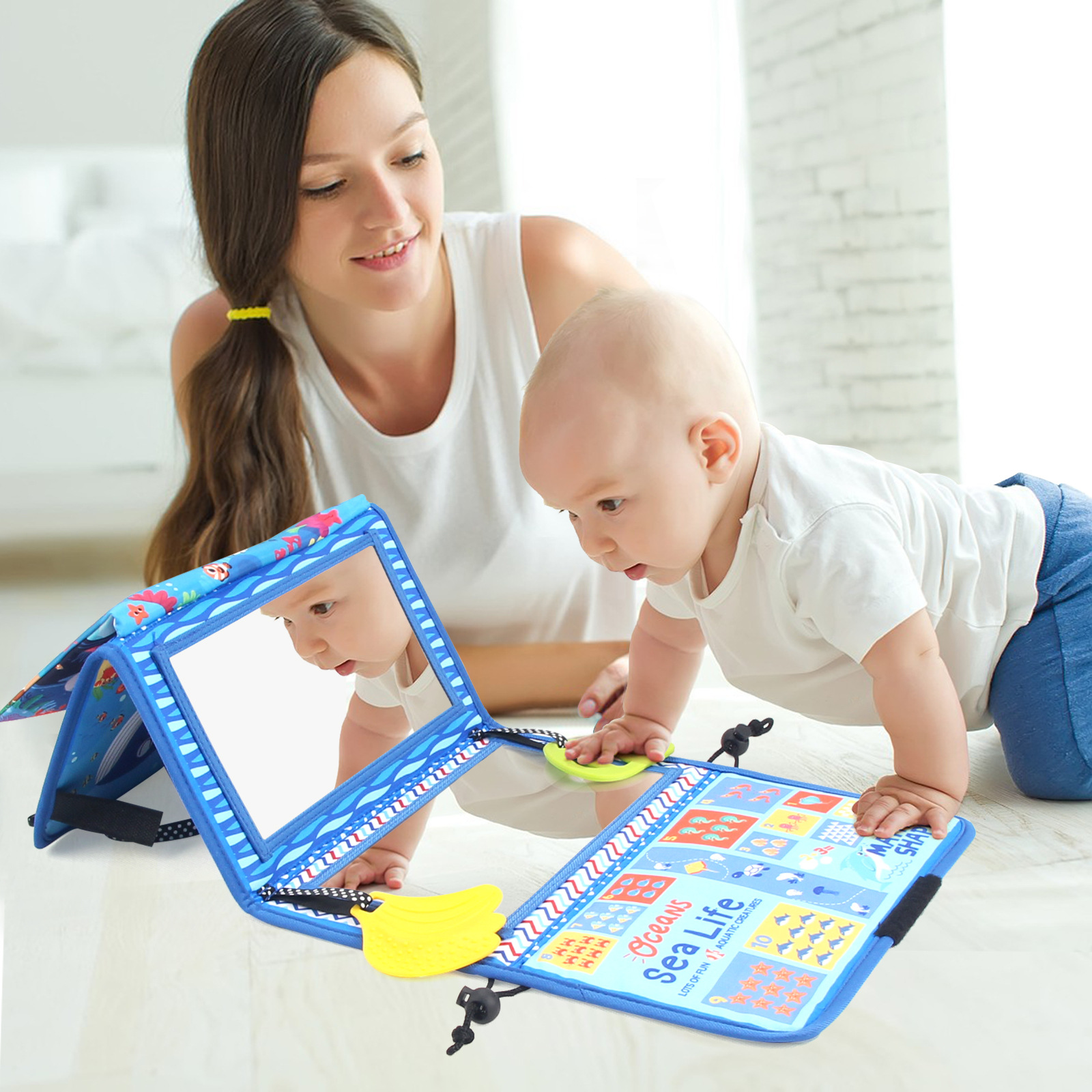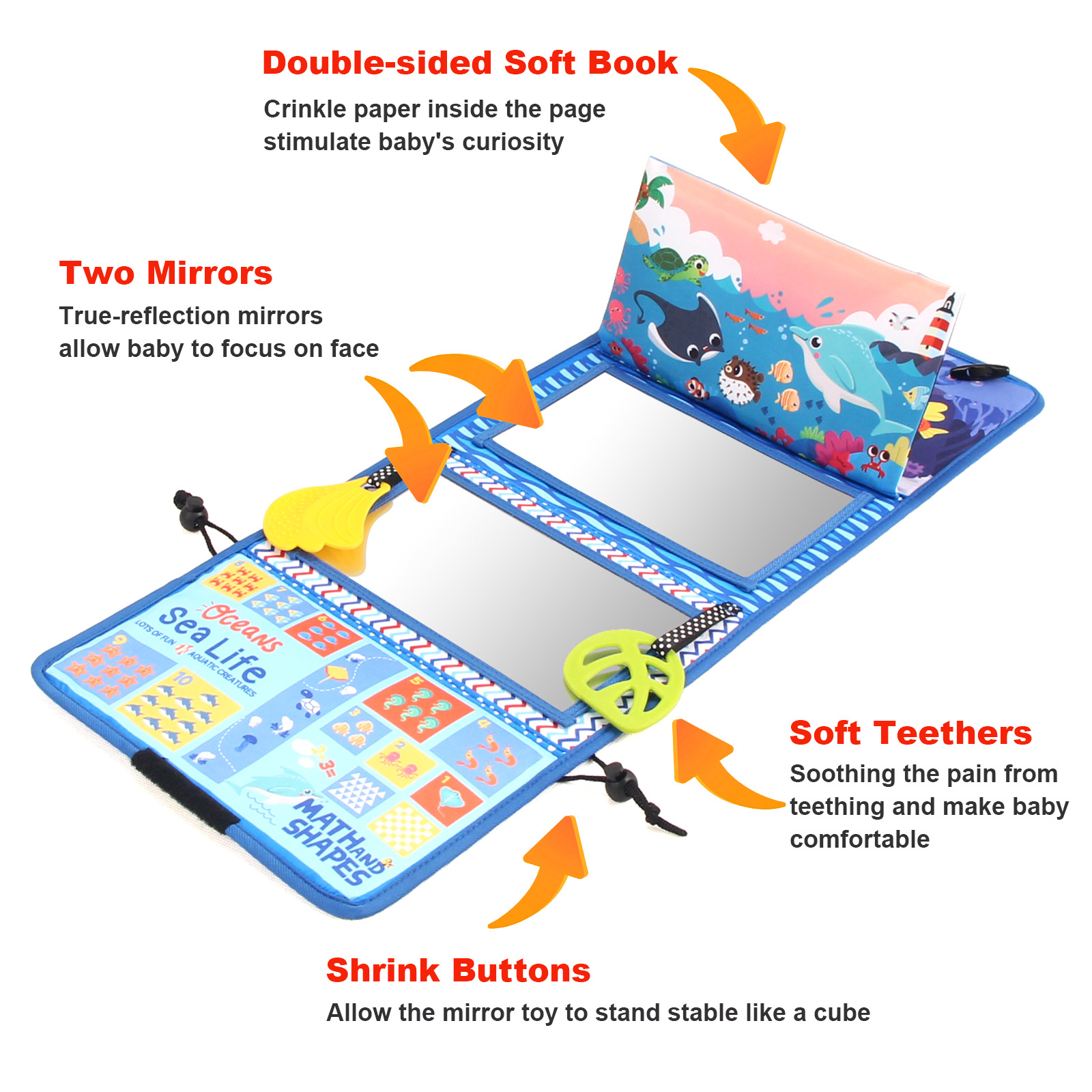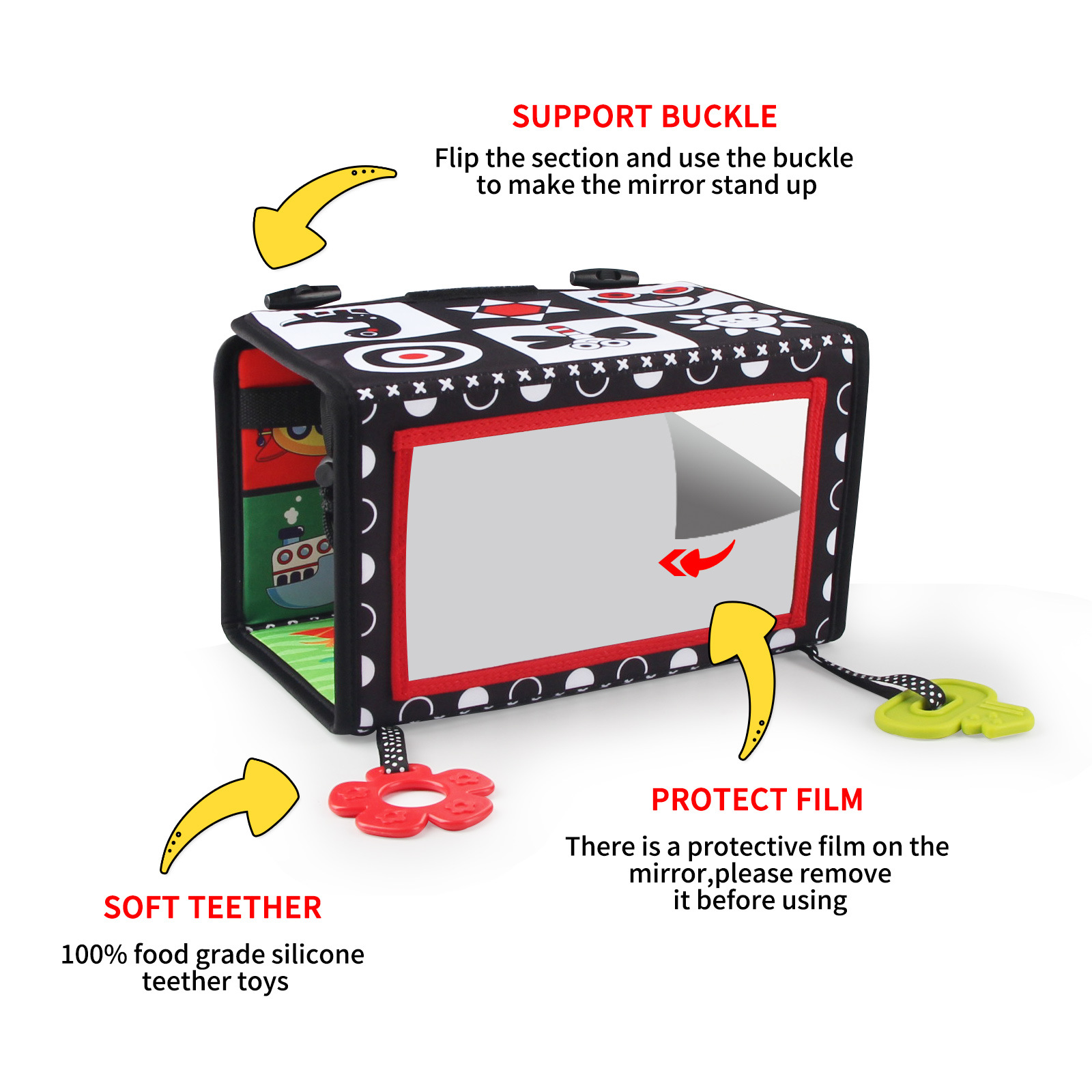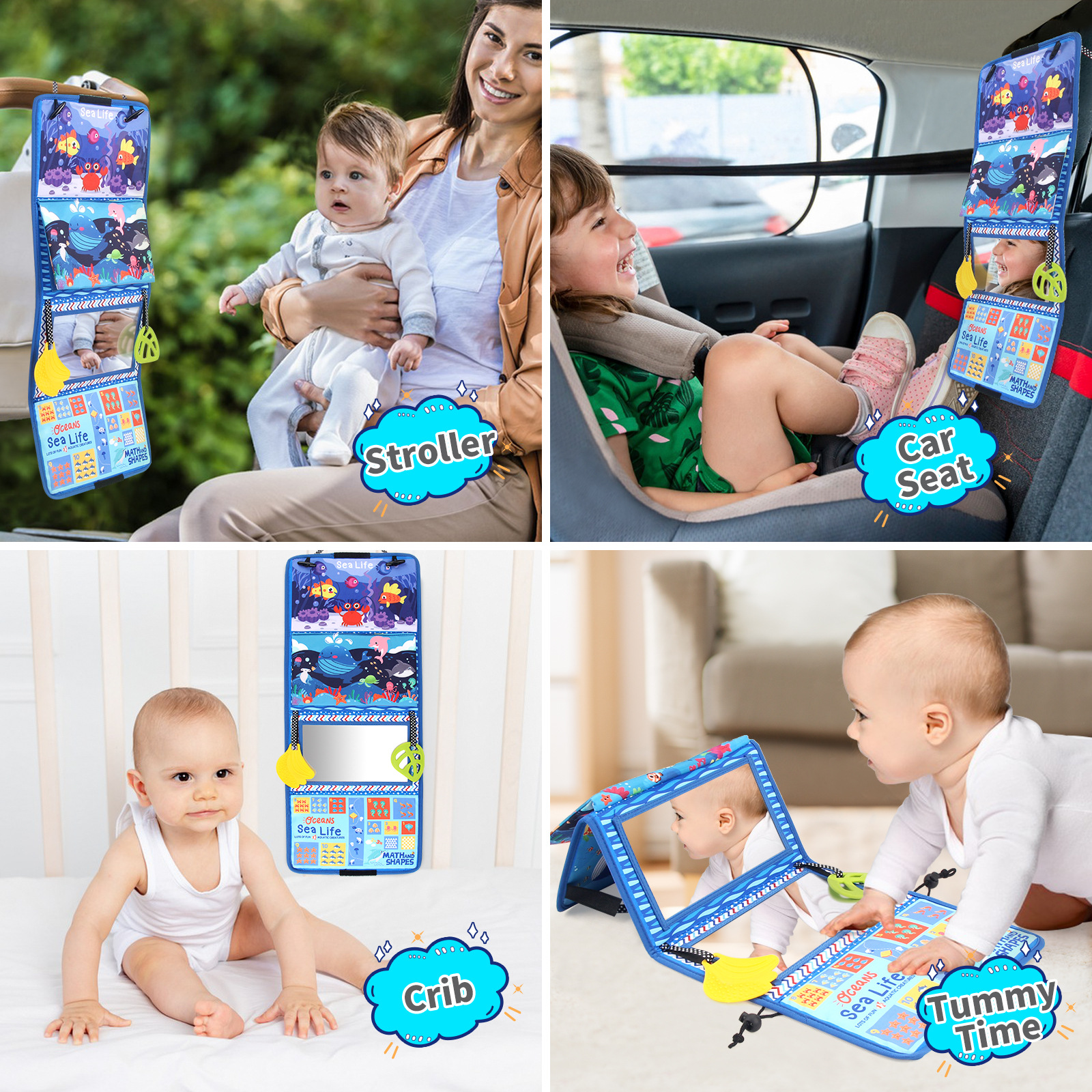 Promotes Sensory Development: The mirror, textures, and high-contrast designs stimulate visual and tactile senses,