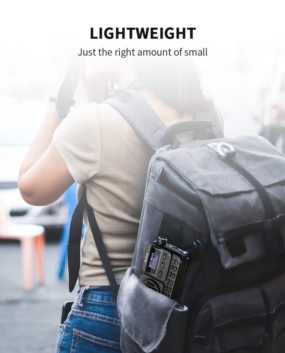 The convenient LCD display shows track information, radio frequency, and battery status, adding an extra layer of usability.