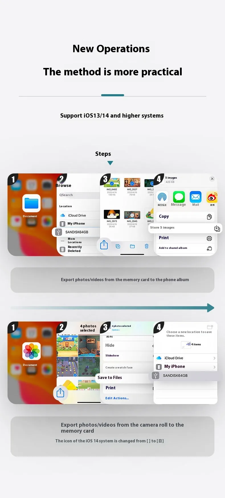 Designed for efficiency, this adapter supports high-speed data transfer, allowing you to quickly move files between your phone and camera or other storage devices. Whether you're backing up important media files or moving large video files from your camera, this adapter ensures fast and reliable data transfer. Save time and increase productivity by quickly managing your data without needing to use a computer or complex software.