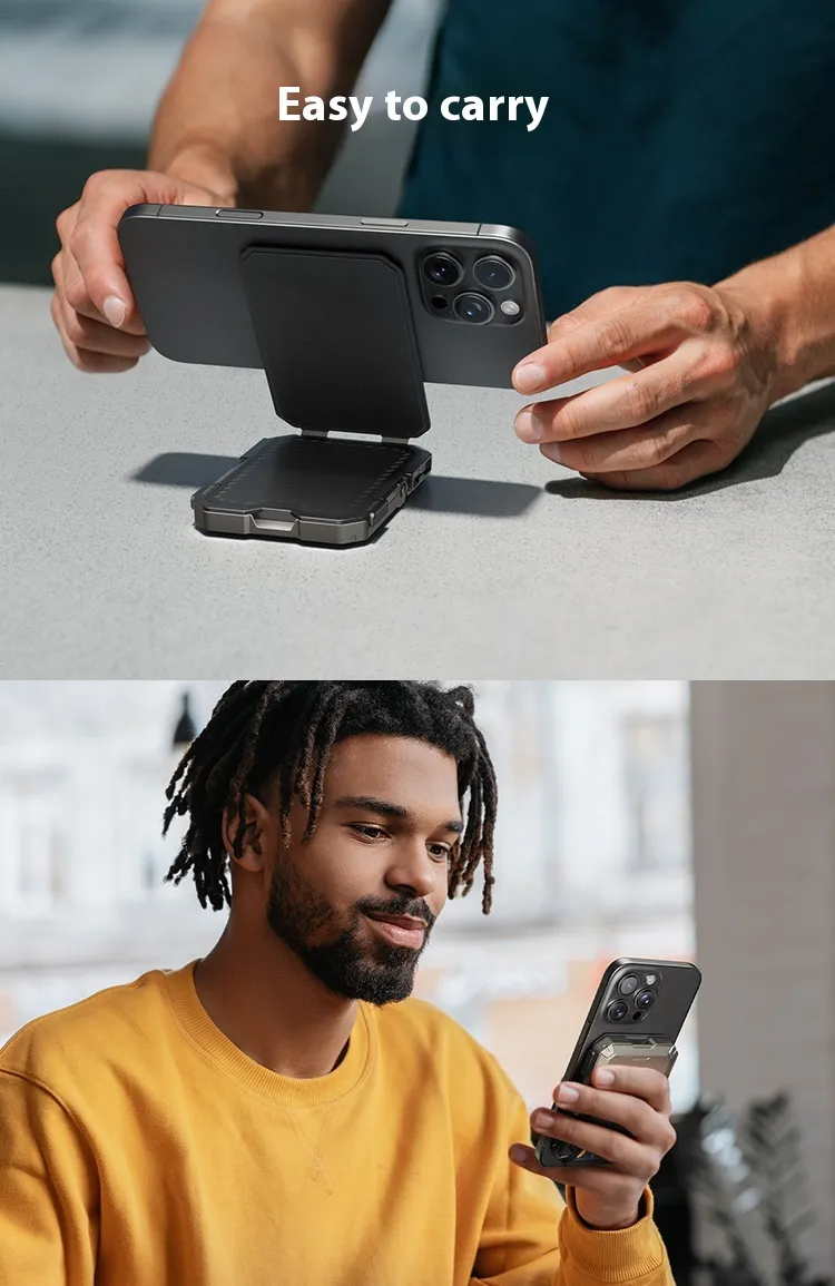 Crafted with high-quality metal and strong magnets, this bracket ensures your phone stays firmly in place. The foldable design allows for adjustable angles, giving you a comfortable viewing position wherever you are. Compact and lightweight, it easily fits in pockets or bags, making it ideal for travel, commuting, or everyday use.