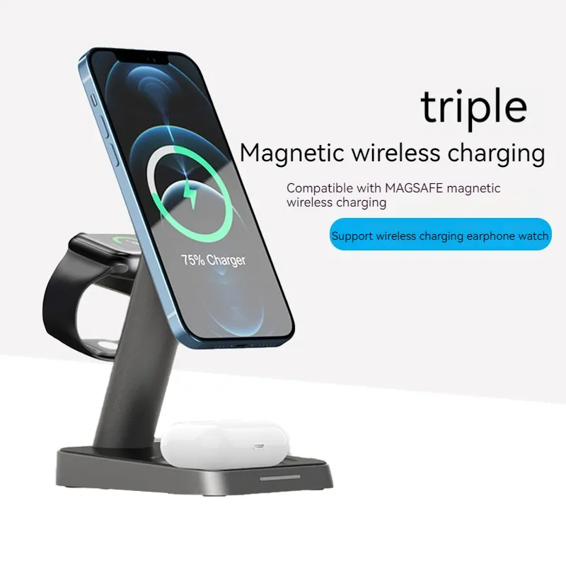 With advanced wireless charging technology, this charger supports fast charging for your devices, ensuring that your phone, watch, and earbuds are charged quickly and efficiently. The charger is equipped with Qi-certified wireless charging pads, providing safe and reliable power delivery for your gadgets. No more cluttered charging cables—just place your devices on the designated charging zones and let the technology do the rest.