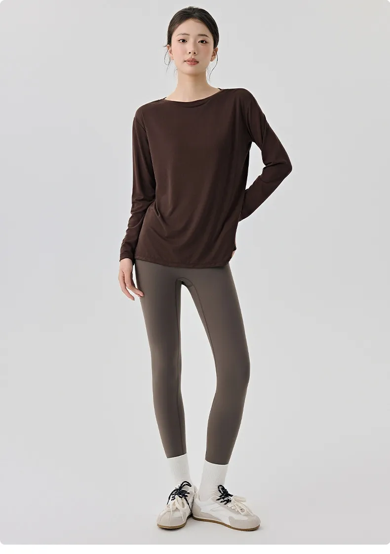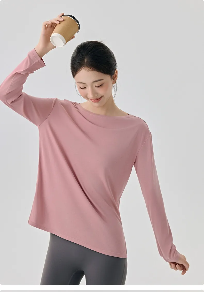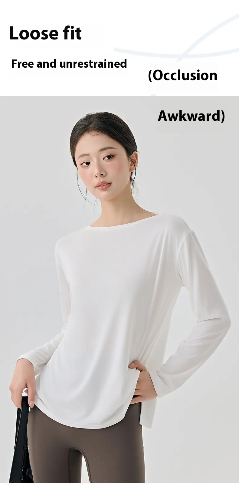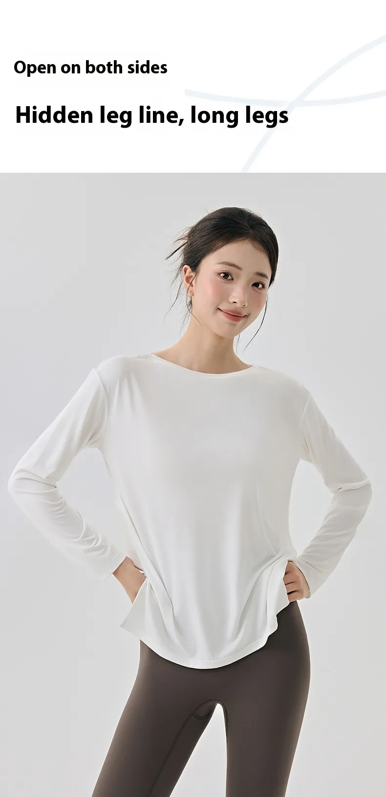 Modal Sports Blouse Women's Long Sleeve Slit On Both Sides Loose Breathable