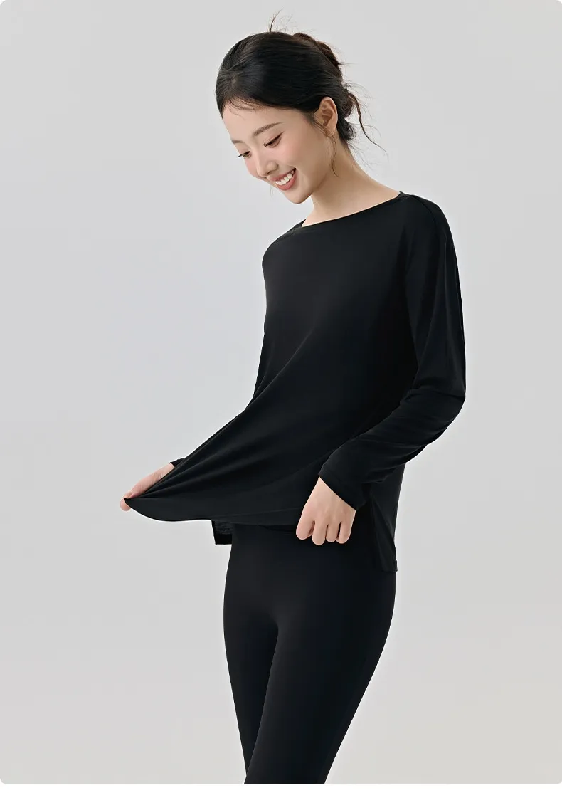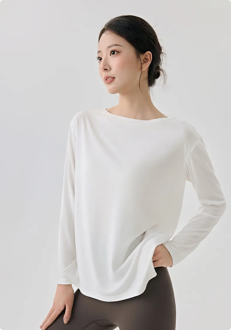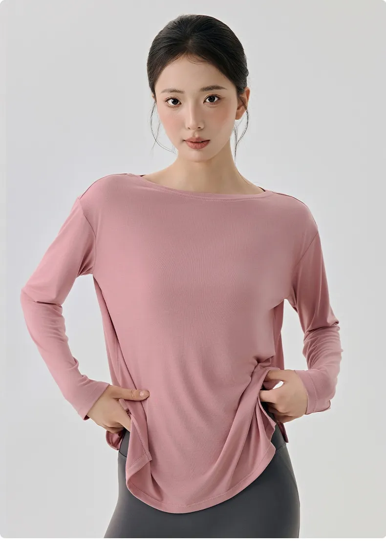 The Modal Sports Blouse is the perfect combination of functionality, comfort, and style. Made from breathable modal fabric, it provides superior moisture-wicking properties, making it ideal for staying cool and dry during workouts or outdoor activities. The long sleeves offer just the right amount of coverage for cooler days, while the side slits ensure you have full range of motion. With its loose and relaxed fit, this blouse allows you to move freely, whether you're practicing yoga or simply enjoying a walk in the park.