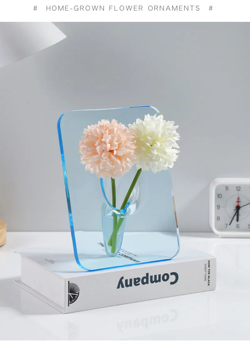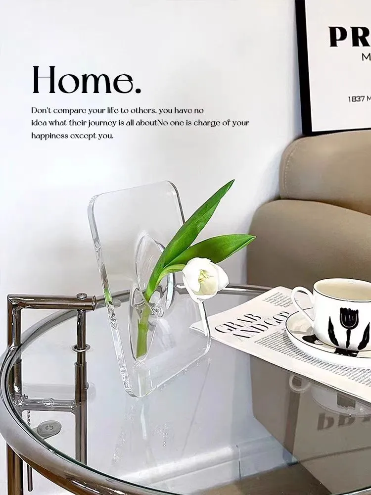 WIDE APPLICATION -- The perfect decoration - Acrylic photo frame vase can be placed on any table, just with flowers it will be very beautiful, suitable for table, desk, end table, living room, room, any decoration
