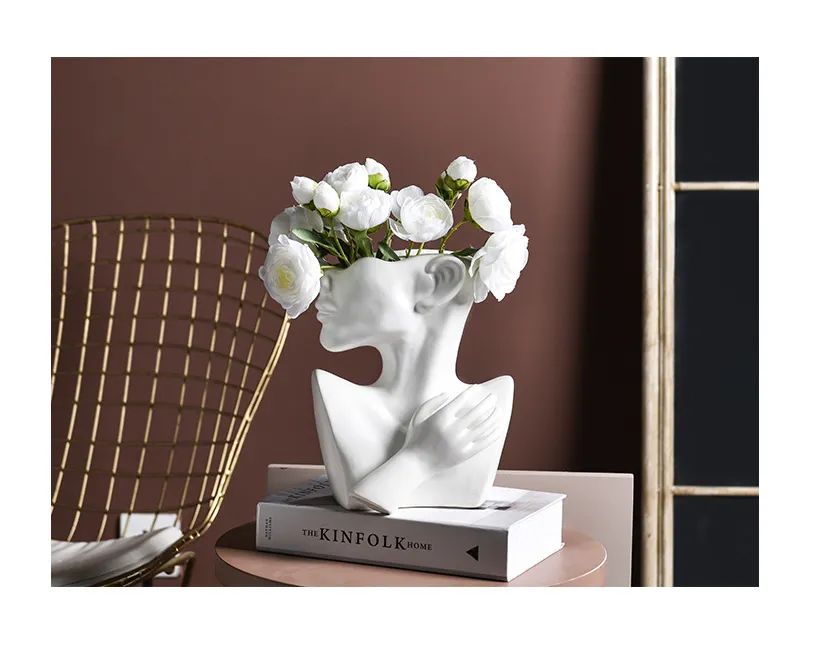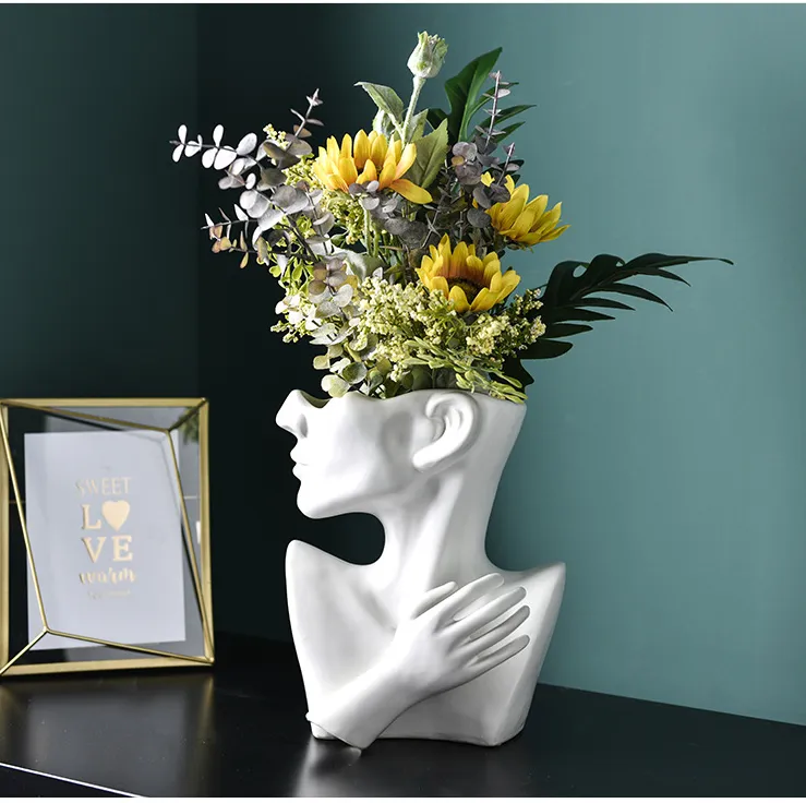 Modern Nordic Style Creative Portrait Vase: Human Head Flower Vase