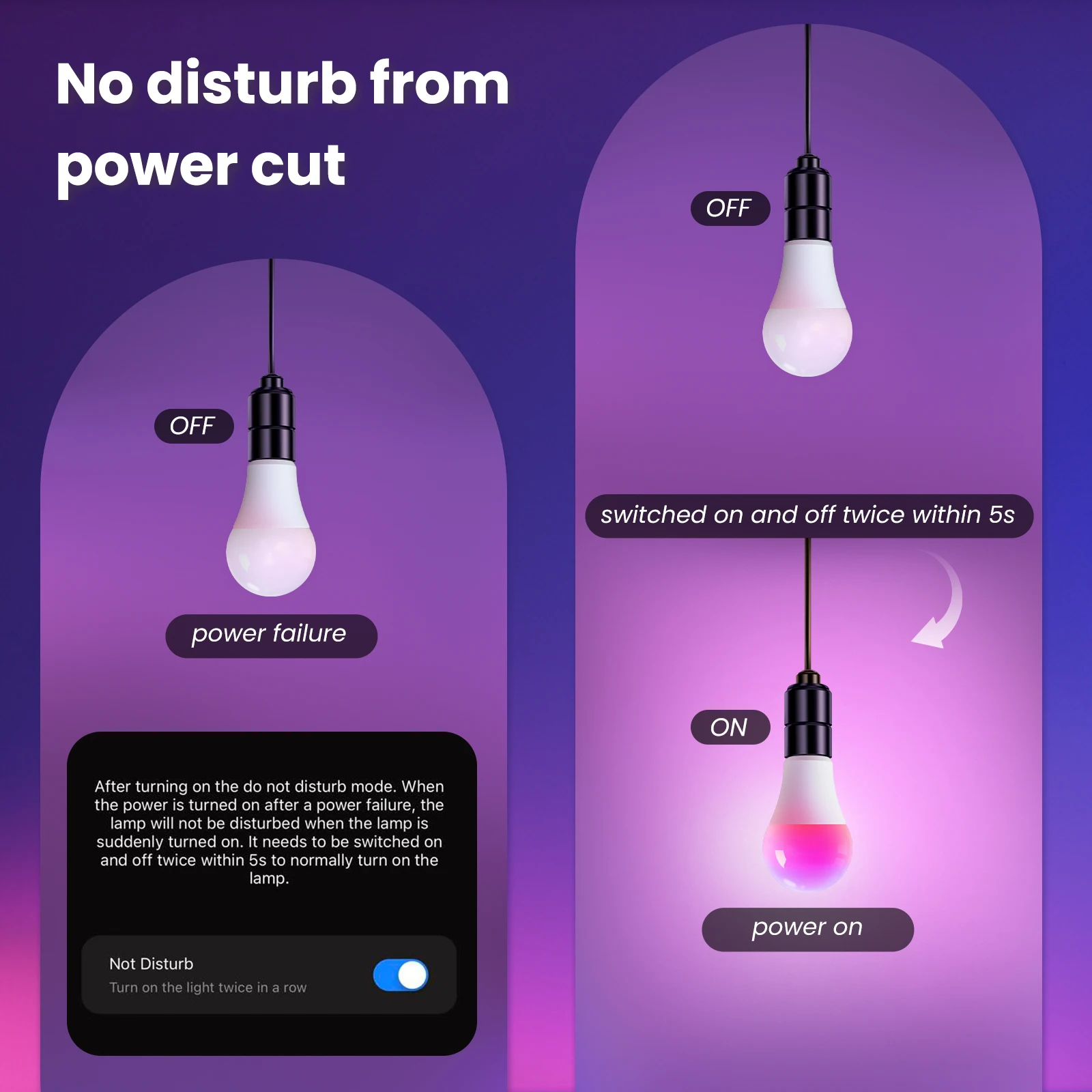 After a power outage is restored, the light bulb remains off, ensuring that your work and rest are not disrupted.