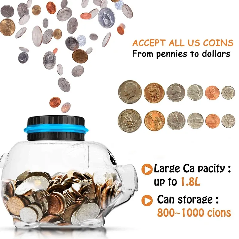 - Clear Design: Easily see how much you've saved with the transparent structure.